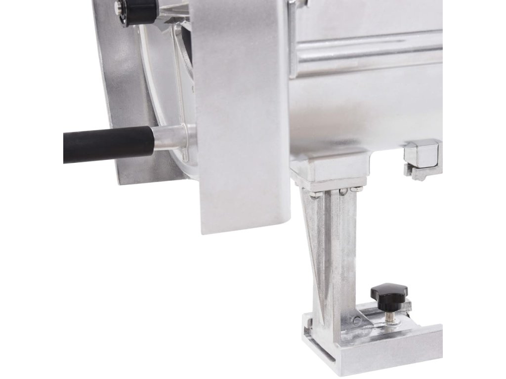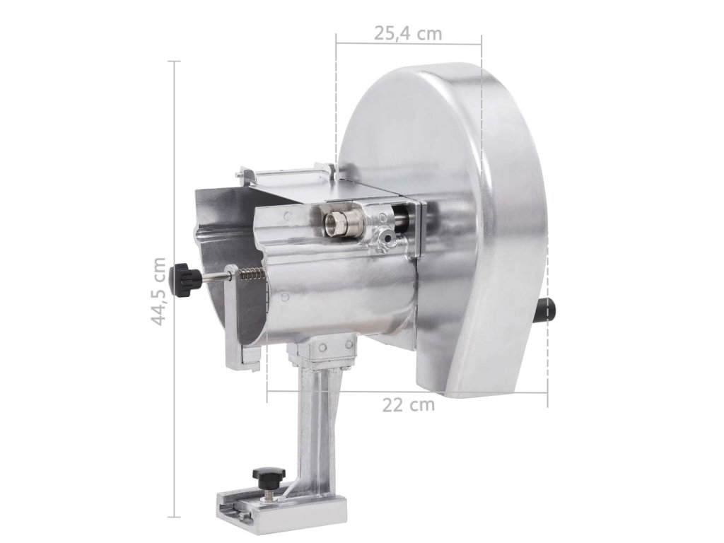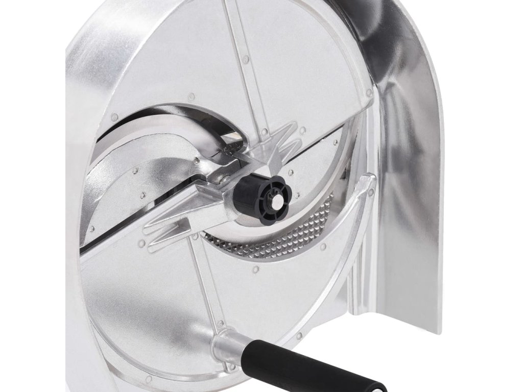 Prístroj na krájanie zeleniny, ktorý sa vyznačuje jednoduchou a robustnou hliníkovou konštrukciou, má ostré nože vyrobené z nehrdzavejúcej ocele pre vysokú účinnosť a životnosť. Hrúbka rezu je nastaviteľná v rozmedzí od 0,3 mm do 8 mm. Krájač na zeleninu je možné navyše ľahko a rýchlo pripevniť k pracovnej doske pomocou pribaleného montážneho materiálu. Výrobok sa jednoducho montuje.