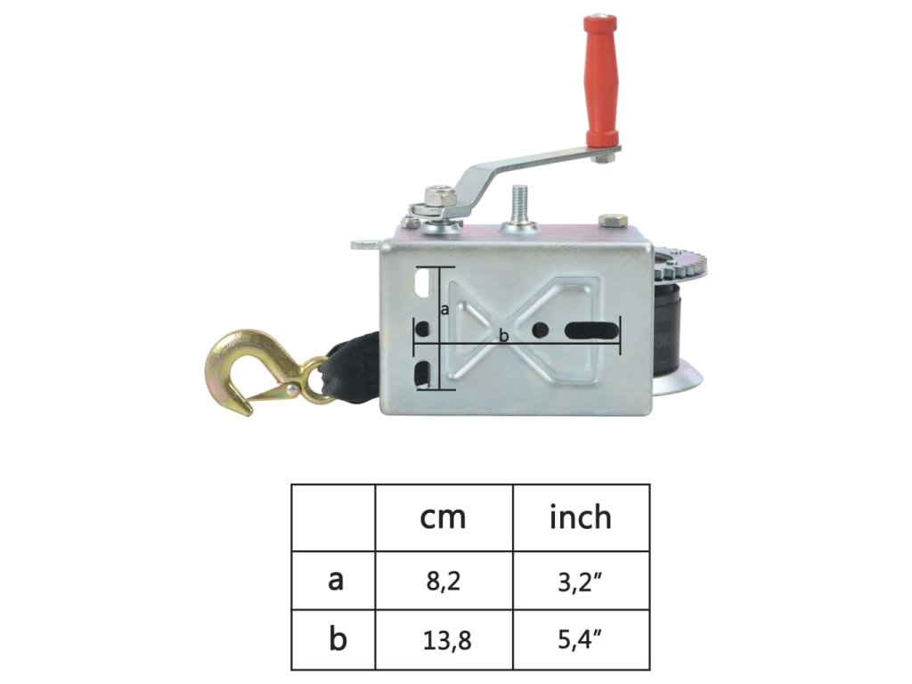 Tento ručný navijak s popruhom je ideálny pre zdvíhanie nákladných automobilov a prívesov, ako aj iné použitie v preprave. V našom obchode si môžete objednať aj kompletný stojan pre navijak na príves pre člny (SKU 90634).