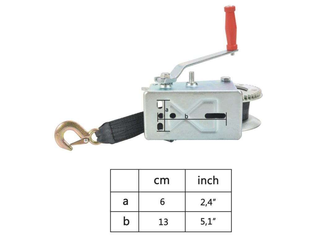 Tento ručný navijak s popruhom je ideálny pre zdvíhanie nákladných automobilov a prívesov, ako aj iné použitie v preprave. V našom obchode si môžete objednať aj kompletný stojan pre navijak na príves pre člny (SKU 90634).