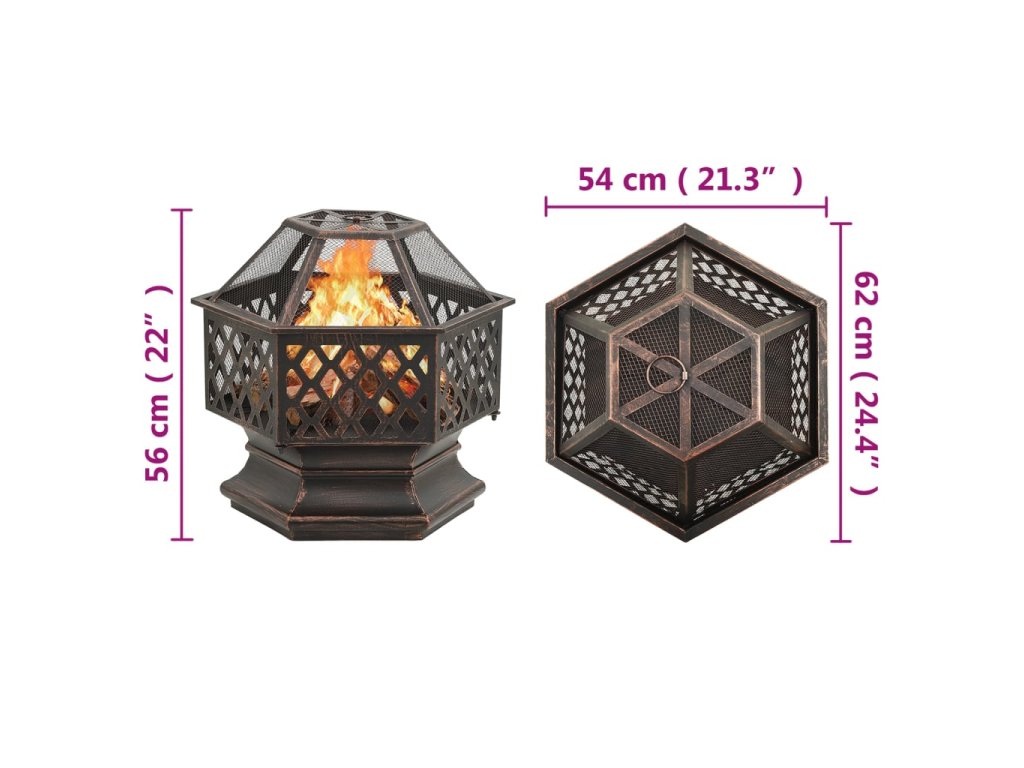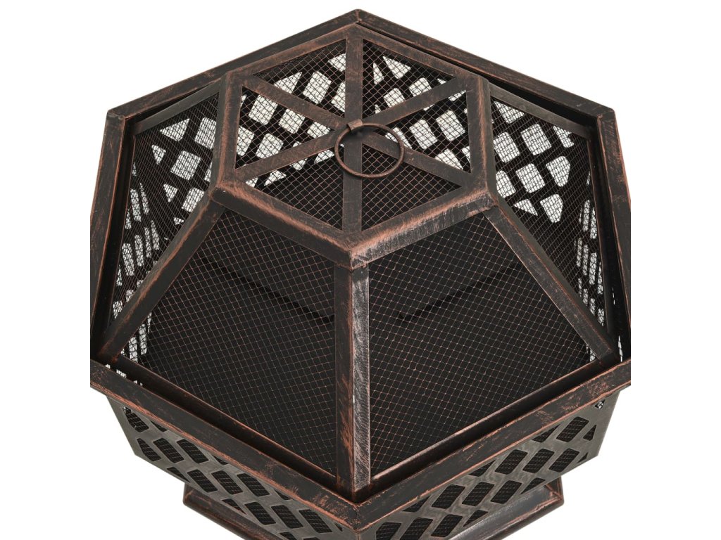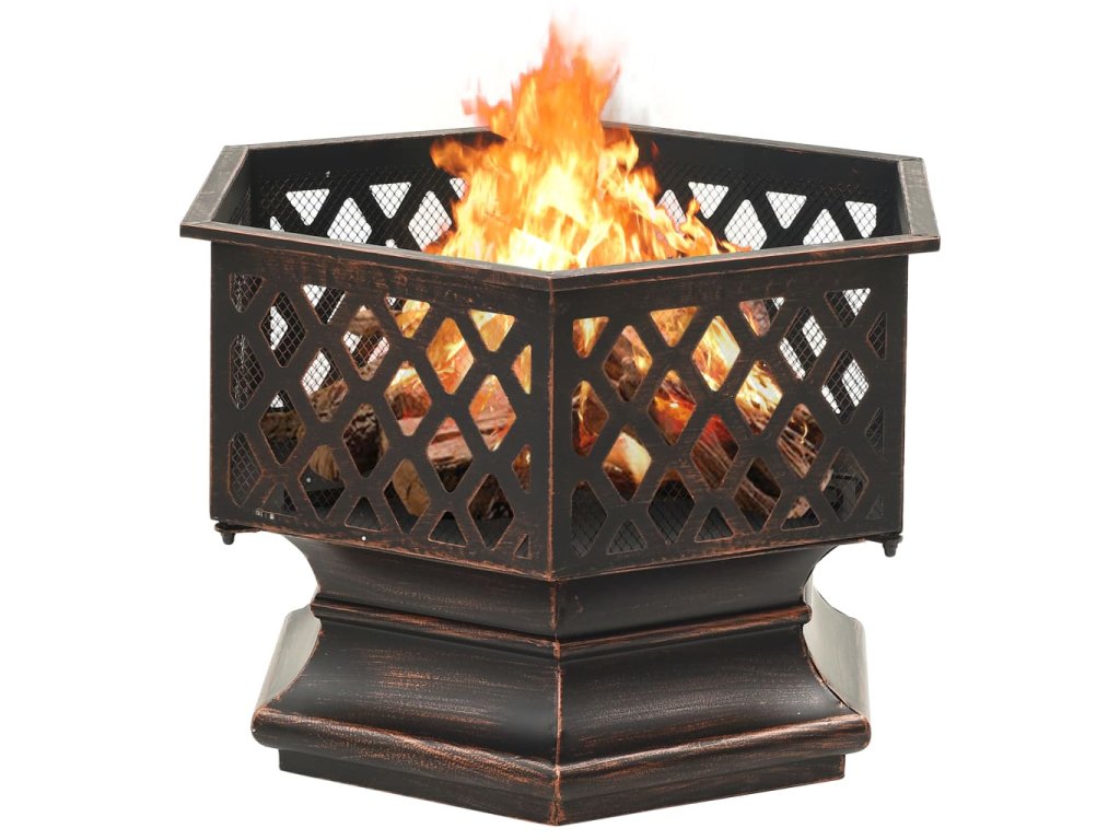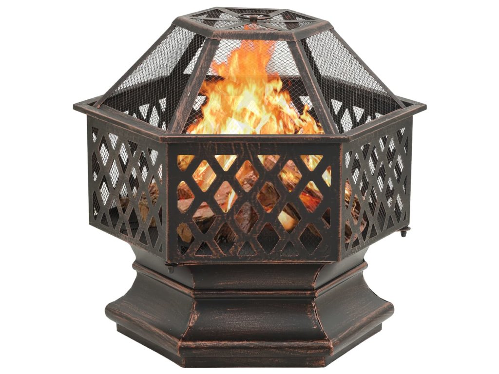 - Praktický dizajn: Toto ohnisko s veľkou a hlbokou misou vám umožňuje spraviť aj veľký oheň, z ktorého sa môžete vy a vaša rodina tešiť dlhé hodiny. Okrem toho je v sieťovom kryte praktický krúžok, aby ste ho mohli ľahko prenášať. Priložený kovový kutáč môžete použiť aj na odstránenie sieťového krytu a upravenie polienok.