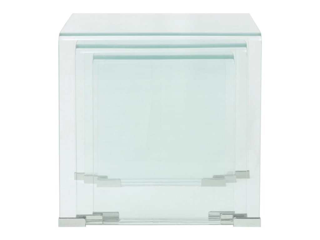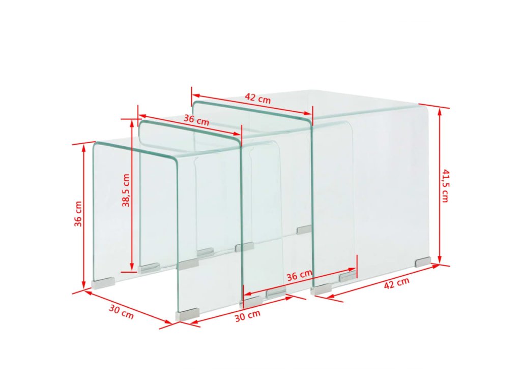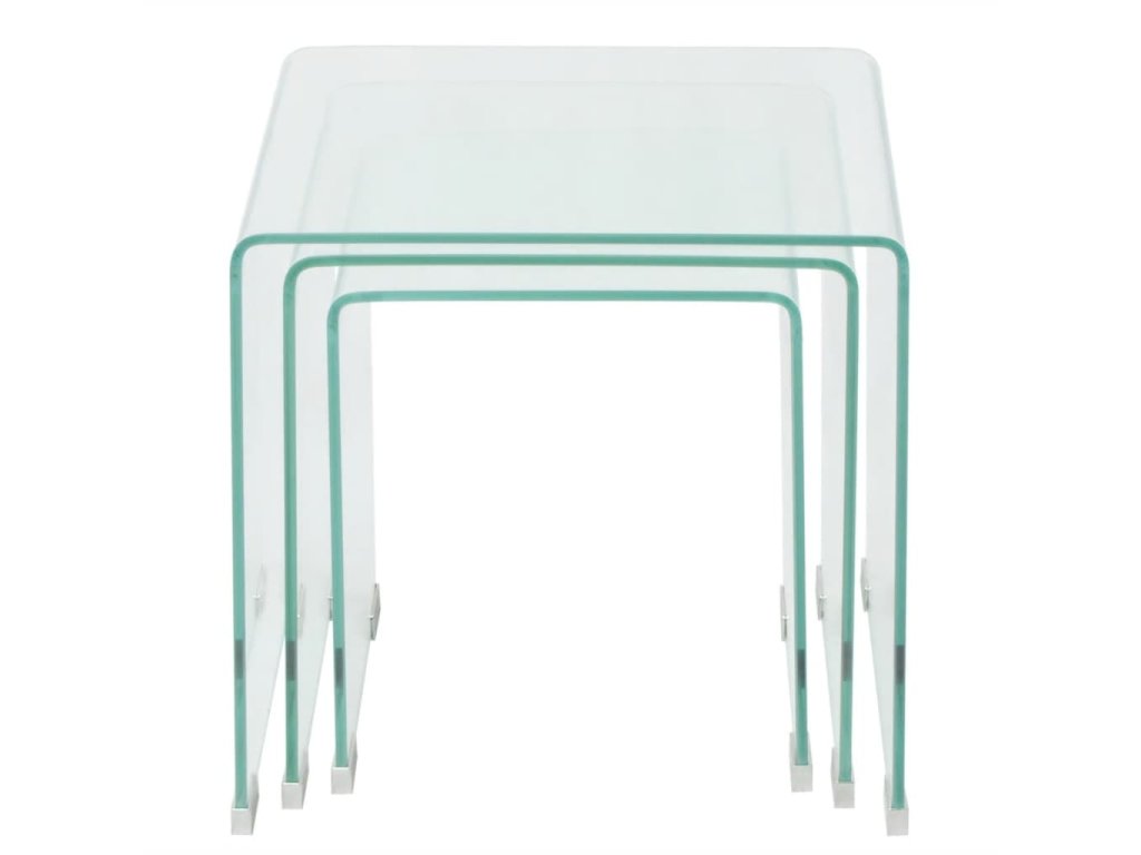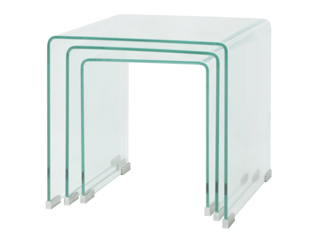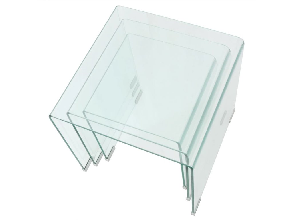 Zasúvacie stolíky sú multifunkčné. Môžu byť použité v obývacej izbe ako praktický povrch na uskladnenie Vašich nápojov alebo akýchkoľvek ďalších predmetov, ktoré potrebujete mať na dosah ruky. Môžete preniesť jeden kus aj do svojej spálne a použiť ho ako jedinečný nočný stolík! Zásuvné stoly sú vyrobené z tvrdeného bezpečnostného skla. Vďaka rozdielnym rozmerom môže táto súprava konferenčných stolíkov splniť rôzne potreby. Keď sa menšie stolíky zasunú pod väčšie, vytvorí sa dodatočný priestor a ušetrí Vám úložný priestor.