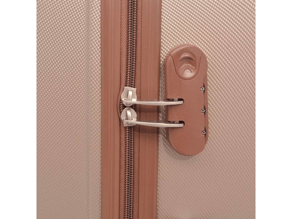 Táto štýlová sada kufrov má vysokokvalitný a tvrdý kryt z ABS a bezpečnostné uzamykanie, aby vaše cennosti ostali v bezpečí. Vnútorné napínacie popruhy zaisťujú, že bude obsah kufríka usporiadaný a nebude sa posúvať. Okrem ergonomických teleskopických rúčok je každý kufrík vybavený aj dvoma rúčkami na nosenie (na vrchu a na boku) a štyrmi kolieskami, ktoré sa dajú otáčať o 360 stupňov.