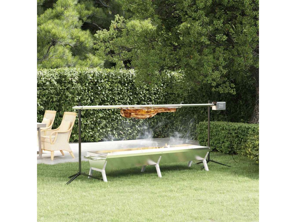 Grilujte celé jahňa alebo prasiatko s týmto automatickým grilom a podnosom! Tento gril, vybavený elektromotorom, vám určite rozžiari leto!