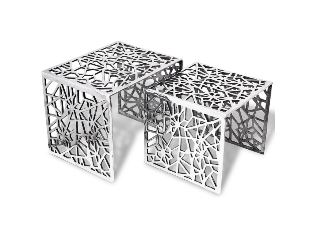 Tieto bočné stolíky sú ľahké, odolné a ľahko sa s nimi manipuluje, pretože sú vyrobené z vysoko kvalitného hliníka. Stolíky sa dajú do seba zasunúť, čím ušetria veľa priestoru, keď sa nepoužívajú.