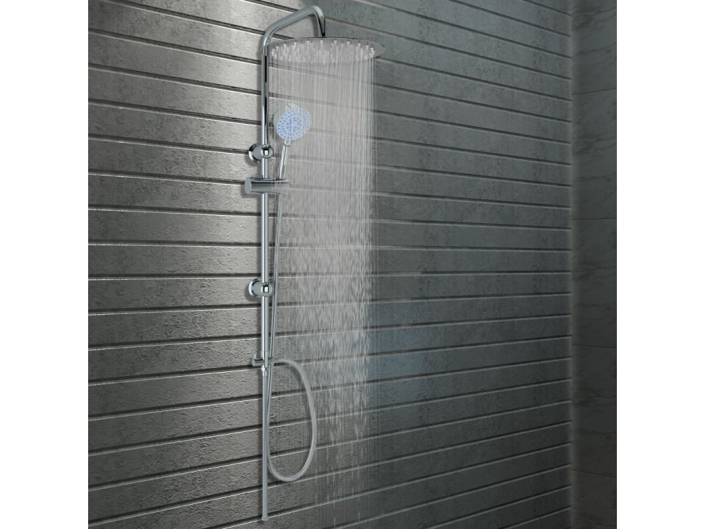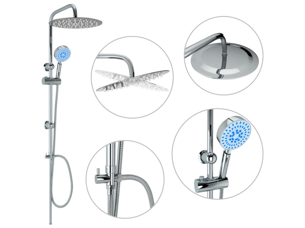Pohodlná kompletná sada sa skladá z dažďovej hlavice z nehrdzavejúcej ocele a ručnej hlavice, ktorá je vyrobená z pevného ABS plastu. Nastaviteľná sprchová hlavica a tyč sa dajú prispôsobiť vašim potrebám aj po inštalácii. 60 trysiek na dažďovej hlavici a 63 trysiek na ručnej hlavici poskytujú rovnomerný prúd a úplné pokrytie vodou. Okrem toho sú hadice vybavené aj systémom proti skrúteniu. Pribalená tyč sa dá namontovať pomocou skrutiek a iného montážneho materiálu, ktoré sa tiež nachádza v balení.