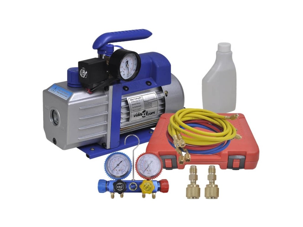 Toto vákuové čerpadlo je určené na profesionálne používanie v chladiacich a klimatizačných systémoch.Čerpadlo vytvára vákuum, prostredníctvom ktorého dôjde k následnému naplneniu klimatizačného systému chladivom. Vďaka svojim technickým vlastnostiam je čerpadlo vhodné na opravu chladiacich systémov, do tlačiarenských strojov, zdravotníckych zariadení, pri vakuovom balení, pri tvarovaní teplom a pri ďalších iných činnostiach. Čerpadlo má hliníkový kryt, praktický olejoznak, ktorý umožňuje kedykoľvek skontrolovať hladinu oleja a tlakomer na sledovanie prietoku chladiva. Má aj zabudovanú rúčku na jednoduchú prepravu.