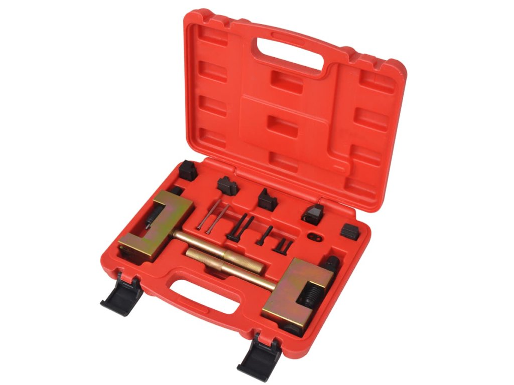 Reťazový lis umožňuje rýchle, jednoduché a bezpečné oddelenie a montáž rozvodových reťazí. Táto sada trvácnych nitovacích nástrojov je vyrobená z pevnej ocele. Sada je vhodná na motory kompatibilné s radom Mercedes Benz, Chrysler a Jeep.