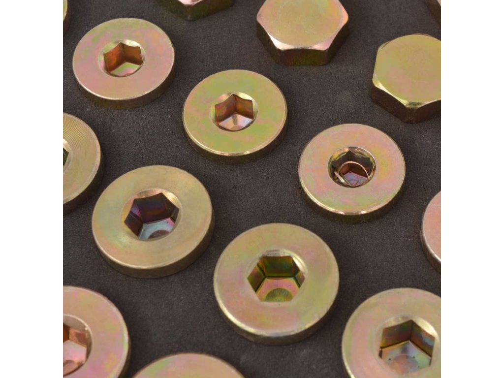 - 36 x Vypoušťacie zátky / zátky olejových vaní vyrobené z 45CR (6 veľkosti, po 6 kusov z každej veľkosti)