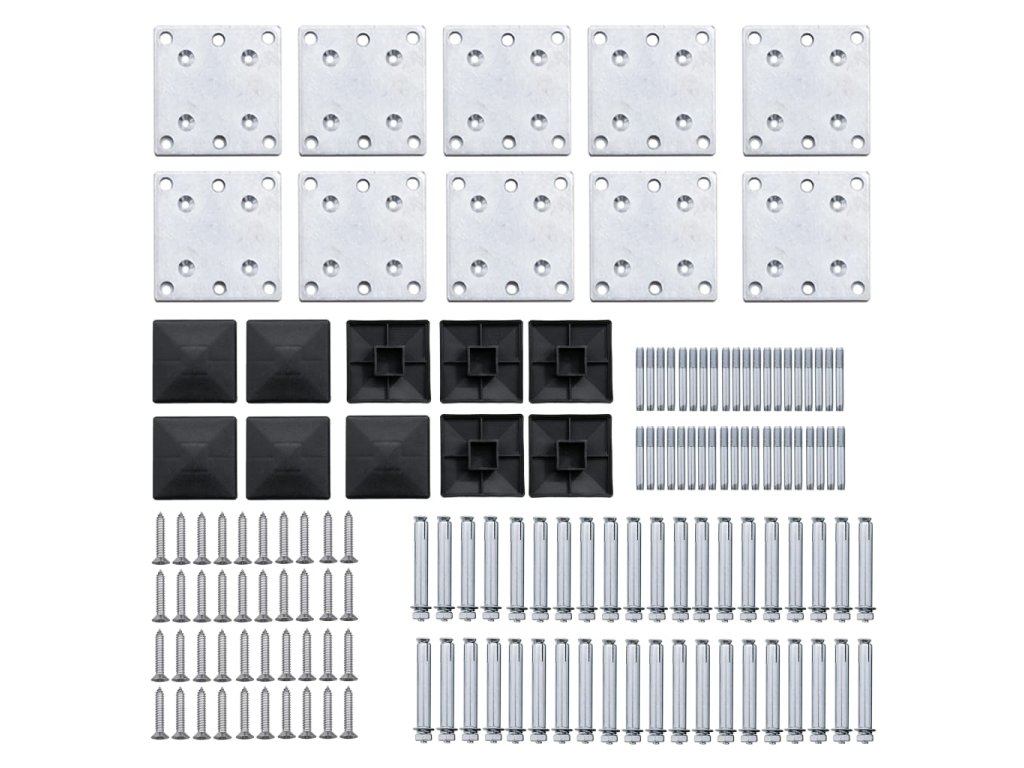 Plotové dosky, ktoré sú navrhnuté s modulárnym systémom, sa ľahko inštalujú a umožňujú vám plot rozširovať. Tieto stĺpiky obsahujú tri sloty, ktoré vám umožňujú zostaviť plot rôznymi spôsobmi, napríklad v priamke (180 stupňov), pravom uhle (90 stupňov) alebo v tvare písmena „T“. Multifunkčné oceľové nožičky sa dajú upevniť dvoma spôsobmi. Prvý spôsob je priskrutkovanie na povrch pomocou dodaných kotviacich skrutiek. Druhým spôsobom je ich ukotvenie do cementového podkladu pomocou uzemňovacieho hrotu (nie je v balení).