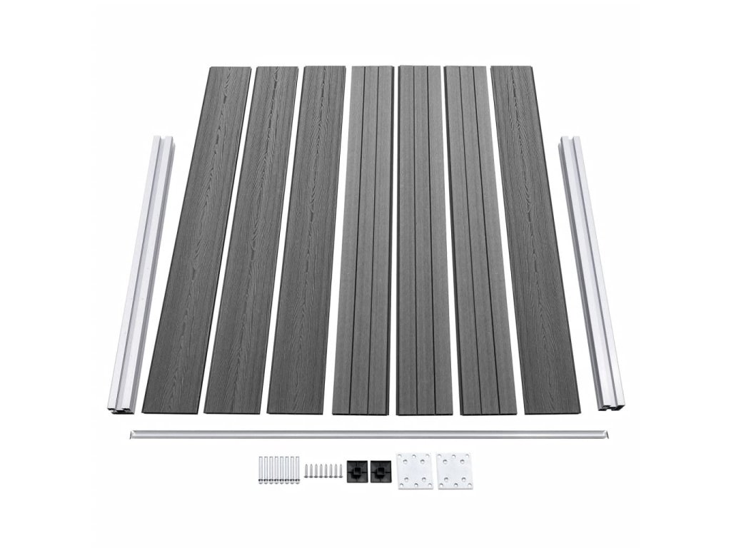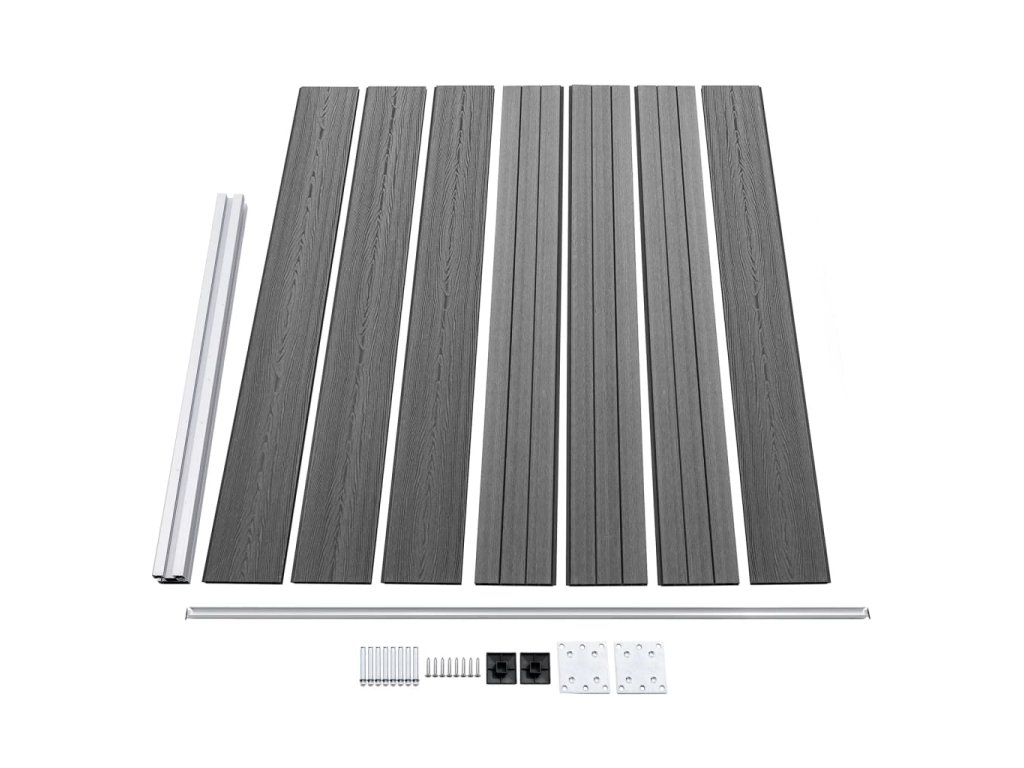 - Materiál: WPC (drevoplastový kompozit), hliník, oceľ