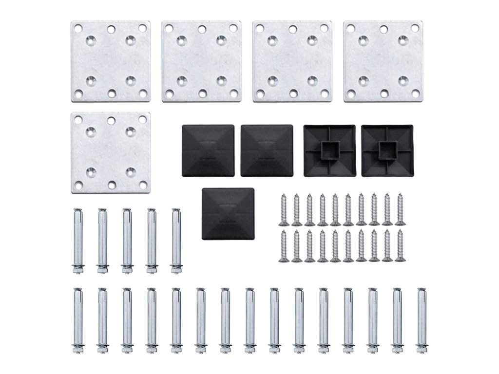 Plotové dosky, ktoré sú navrhnuté s modulárnym systémom, sa ľahko inštalujú a umožňujú vám plot rozširovať. Tieto stĺpiky obsahujú tri sloty, ktoré vám umožňujú zostaviť plot rôznymi spôsobmi, napríklad v priamke (180 stupňov), pravom uhle (90 stupňov) alebo v tvare písmena „T“. Multifunkčné oceľové nožičky sa dajú upevniť dvoma spôsobmi. Prvý spôsob je priskrutkovanie na povrch pomocou dodaných kotviacich skrutiek. Druhým spôsobom je ich ukotvenie do cementového podkladu pomocou uzemňovacieho hrotu (nie je v balení).