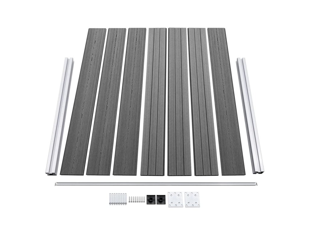 - Materiál: WPC (drevoplastový kompozit), hliník, oceľ