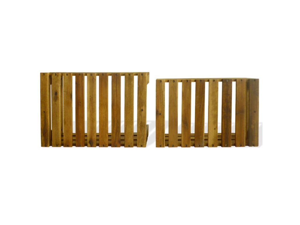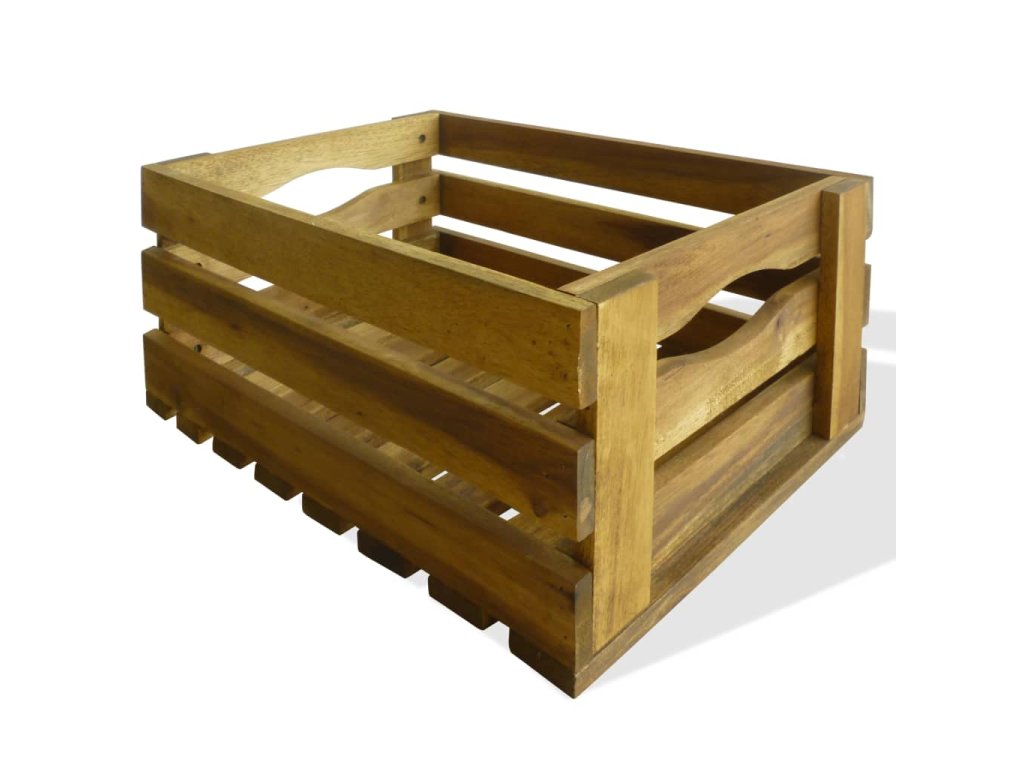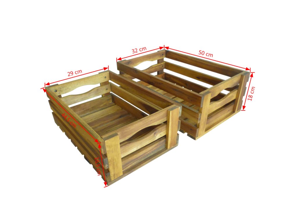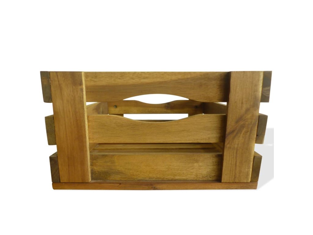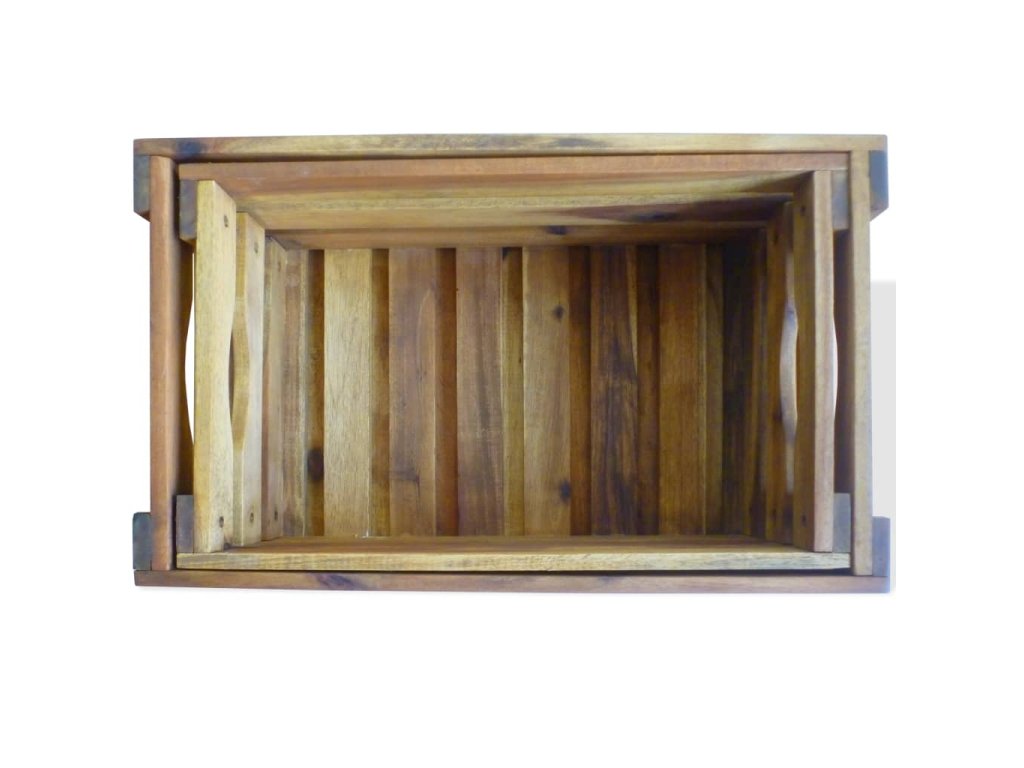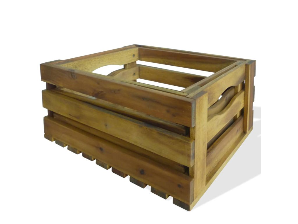 Táto sada prepraviek na jablká je vyrobená z masívneho akáciového dreva a vašej záhrade alebo inému vonkajšiemu priestoru dodá rustikálny šmrnc. Prepravky je možné použiť aj ako bedničky na víno, police na vystavovanie dekorácií, záhradné kvetináče, atď.