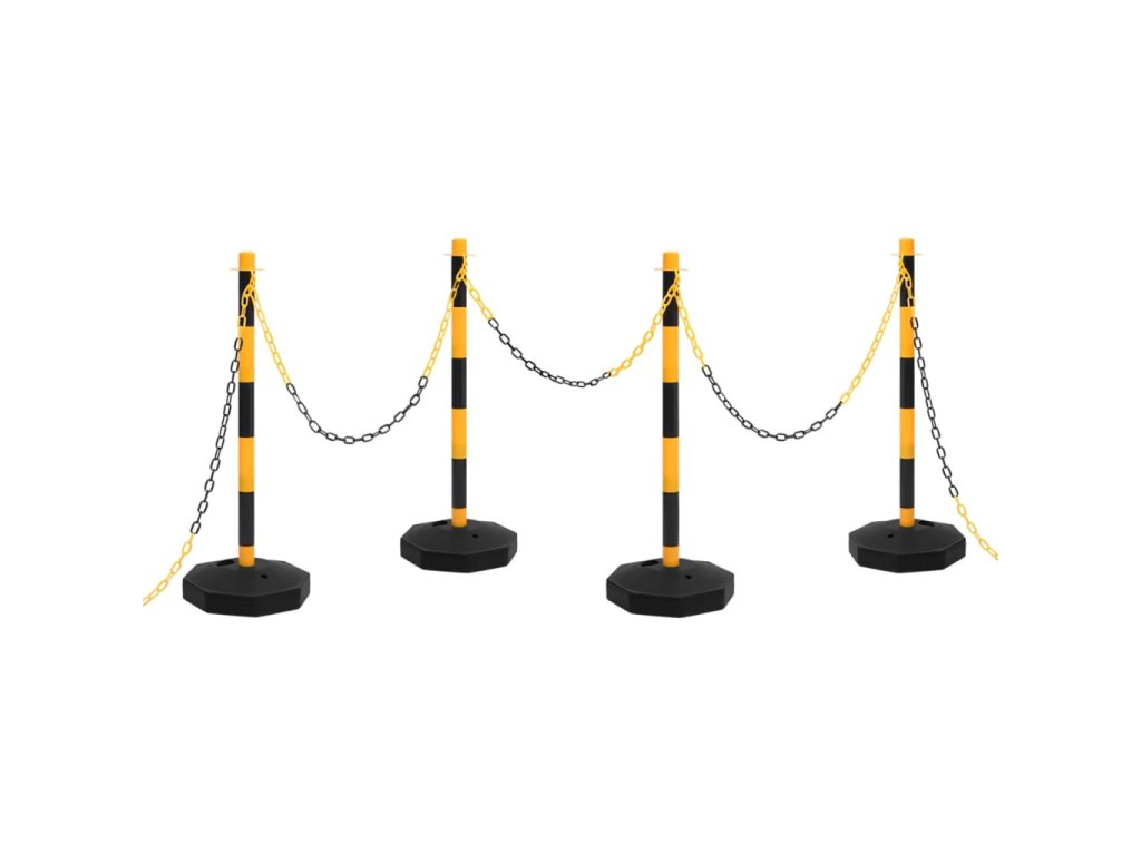 Plastovú 10 m reťaz môžete jednoducho pripevniť k dopravným stĺpikom a vytvoriť tak obmedzený priestor. Sada je ľahká a prenosná. Pre väčšiu stabilitu je možné pribalené podstavce naplniť vodou alebo pieskom. Vďaka jasným farbám sú dopravné stĺpiky dobre viditeľné aj pri slabom osvetlení.