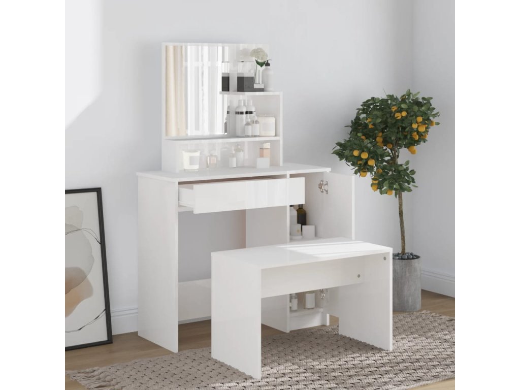 Táto štýlová sada toaletného stolíka dodá vašej spálni nadčasový, rafinovaný vzhľad. Toaletný stolík so stoličkou bude skvelým doplnkom do vašej spálne. S ním budete mať svoju kozmetiku vždy po ruke!