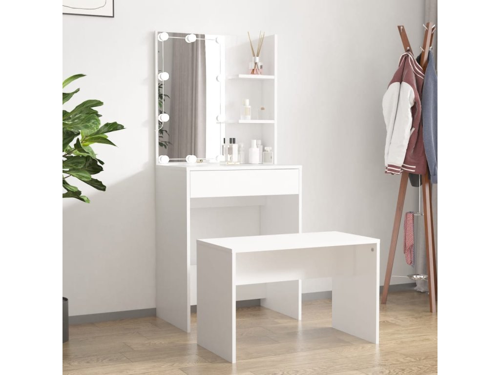 Táto štýlová sada toaletného stolíka dodá vašej spálni nadčasový, rafinovaný vzhľad. Sada toaletného stolíka s LED bude skvelým doplnkom do vašej spálne. S ním budete mať svoju kozmetiku vždy po ruke!