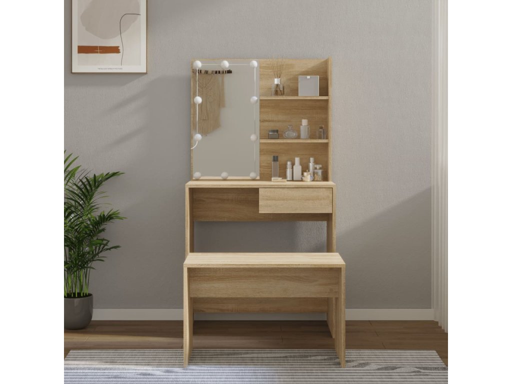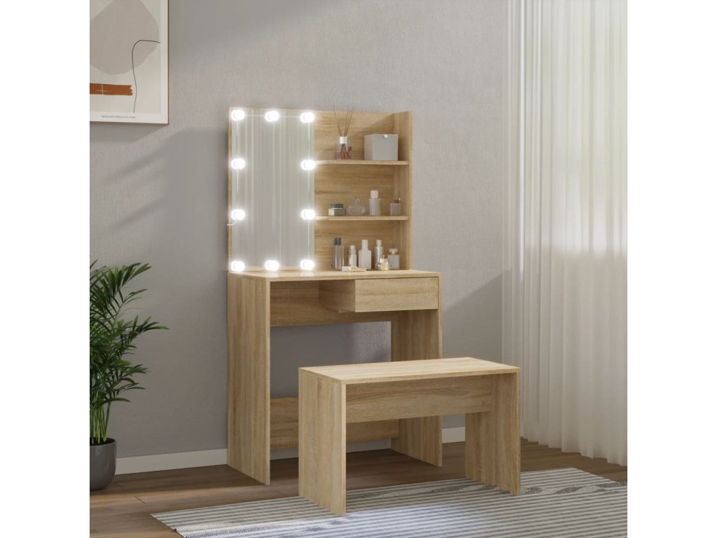 Táto štýlová sada toaletného stolíka dodá vašej spálni nadčasový, rafinovaný vzhľad. Sada toaletného stolíka s LED bude skvelým doplnkom do vašej spálne. S ním budete mať svoju kozmetiku vždy po ruke!