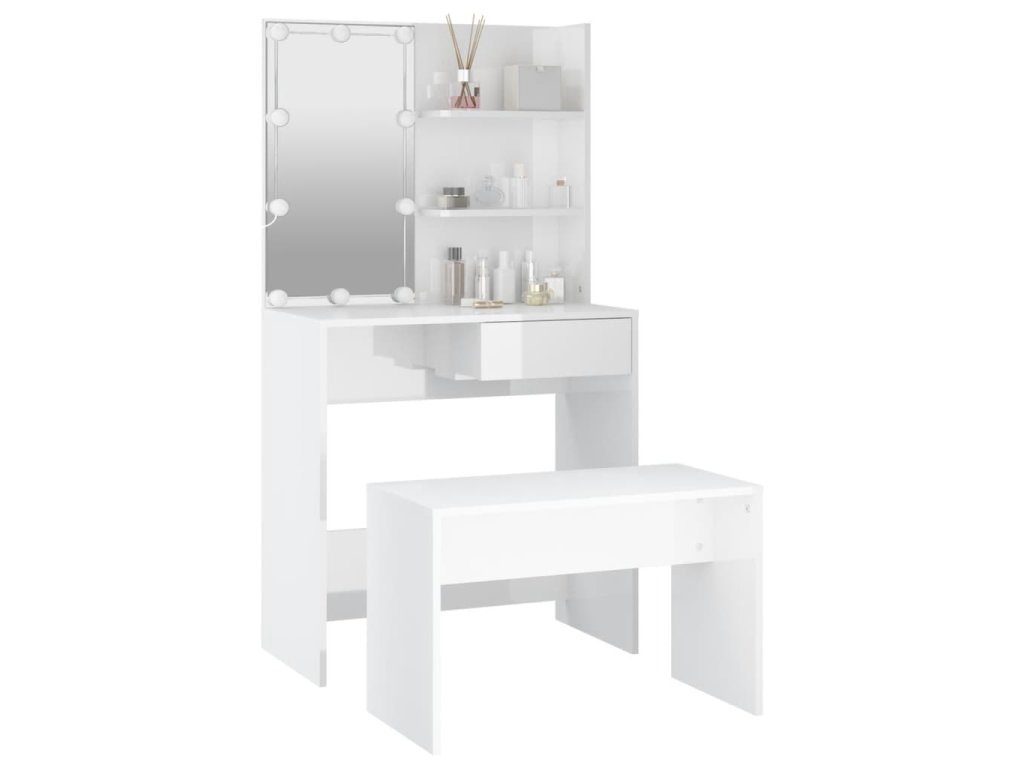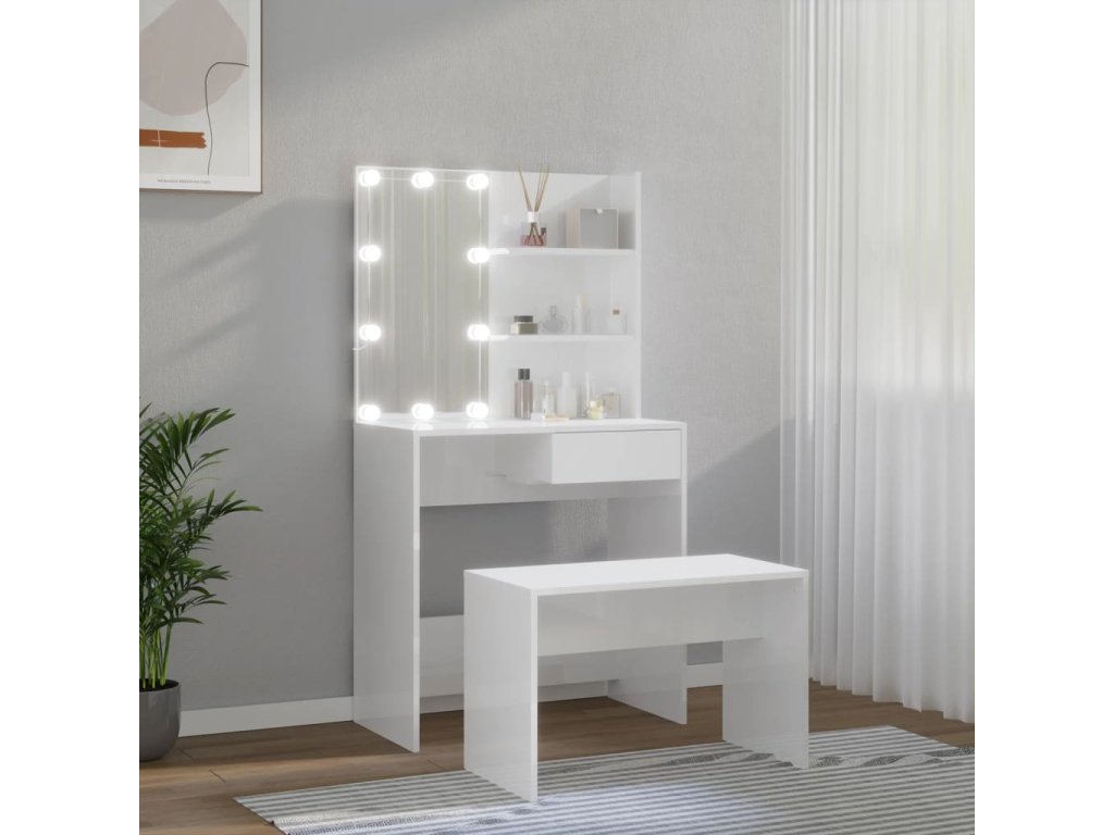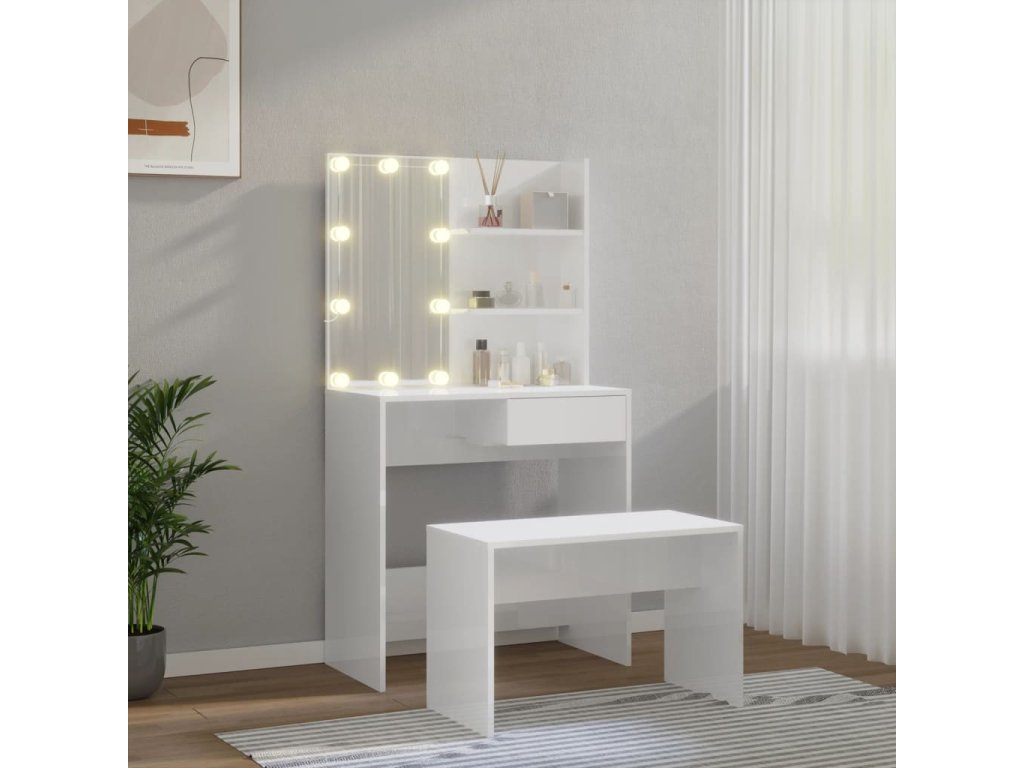 Táto štýlová sada toaletného stolíka dodá vašej spálni nadčasový, rafinovaný vzhľad. Sada toaletného stolíka s LED bude skvelým doplnkom do vašej spálne. S ním budete mať svoju kozmetiku vždy po ruke!