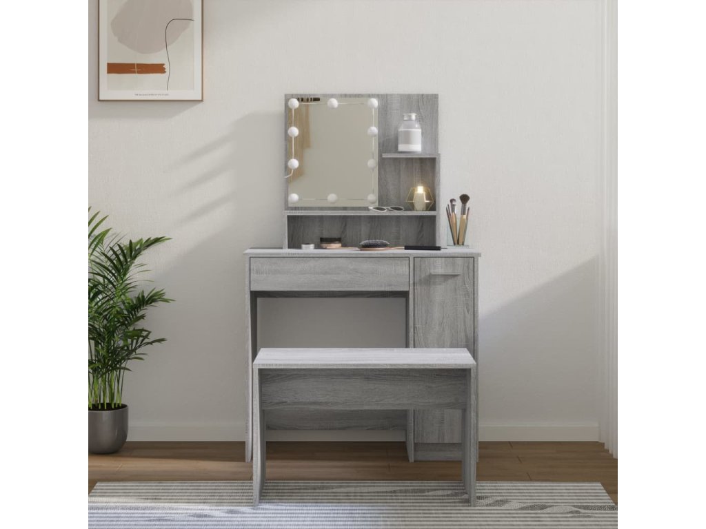 Táto štýlová sada toaletného stolíka dodá vašej spálni nadčasový, rafinovaný vzhľad. Sada toaletného stolíka s LED bude skvelým doplnkom do vašej spálne. S ním budete mať svoju kozmetiku vždy po ruke!