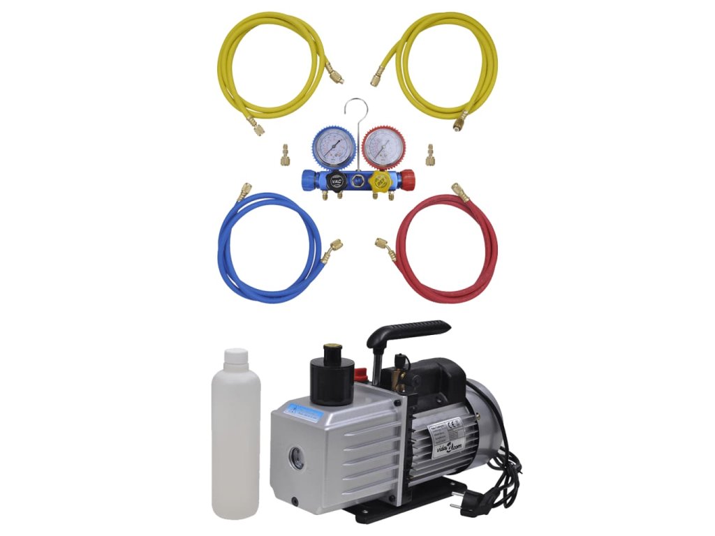 Čerpadlo vytvára podtlak, ktorý umožňuje následné plnenie klimatizačného systému chladivom. Vzhľadom k jeho technickým vlastnostiam je možné čerpadlo použiť na opravu chladenia, pri tlačiarenských zariadeniach, zdravotného vybavenia, na vákuové balenie, tepelné tvárnenie a ďalšie extrakčné činnosti. Čerpadlo má hliníkové puzdro a praktické okienko na okamžitú kontrolu hladiny oleja. Má tiež integrované madlo na jednoduché prenášanie. Priložená 4-cestná sada na meranie je vhodná na plnenie a kontrolu klimatizačných systémov tým, že poskytuje údaje o tlaku v systéme. Čerpadlo je vhodné na použitie vo všetkých klimatizáciách automobilov, rovnako ako aj v komerčných a domácich klimatizačných chladiacich systémoch. Farebne označené meradlá sú rýchle, jasné a ľahko čitateľné a sú uzavreté v ochrannom plášti, aby sa zabránilo poškodeniu. Na rýchle a jednoduché zavesenie meradiel môžete použiť integrovaný oceľový hák. Sada meradiel má odolnú konštrukciu a dodáva sa v kufríku z fúkaného plastu pre jednoduchšiu prepravu a uskladnenie.