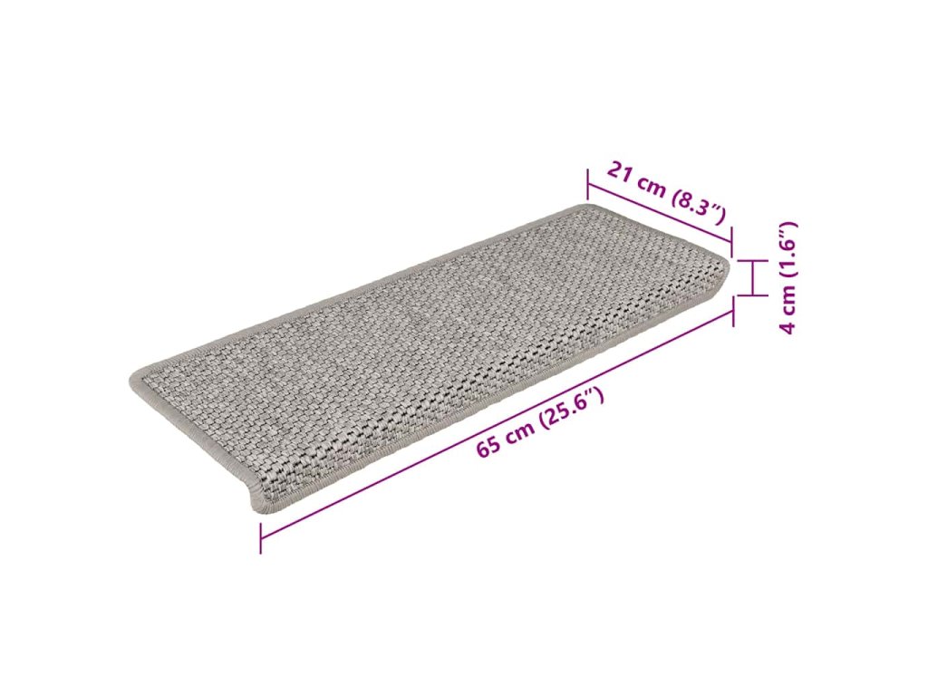 Tieto nášľapy sú vyrobené z pevnej textílie so sisalovým vzhľadom, takže tlmia zvuk, sú protišmykové, teplé a pohodlné. Nášľapy sa dajú oprať a sú zložené tak, aby chránili vrchnú aj prednú časť schodu. Vďaka lepiacim páskam na zadnej strane sa dajú tieto rohože jednoducho a rýchlo pripevniť na schody.