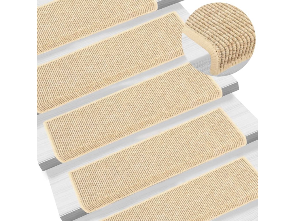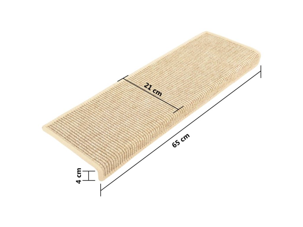 Tieto nášľapy sú vyrobené z pevnej textílie so sisalovým vzhľadom, takže tlmia zvuk, sú protišmykové, teplé a pohodlné. Nášľapy sa dajú oprať a sú zložené tak, aby chránili vrchnú aj prednú časť schodu. Vďaka lepiacim páskam na zadnej strane sa dajú tieto rohože jednoducho a rýchlo pripevniť na schody.