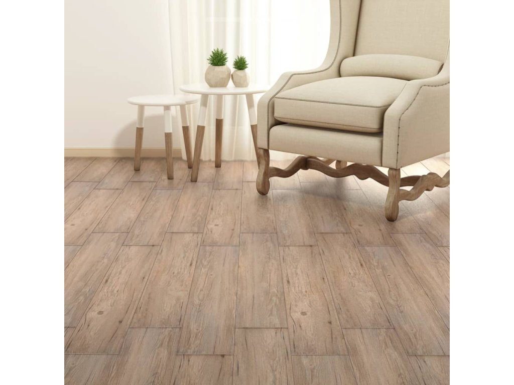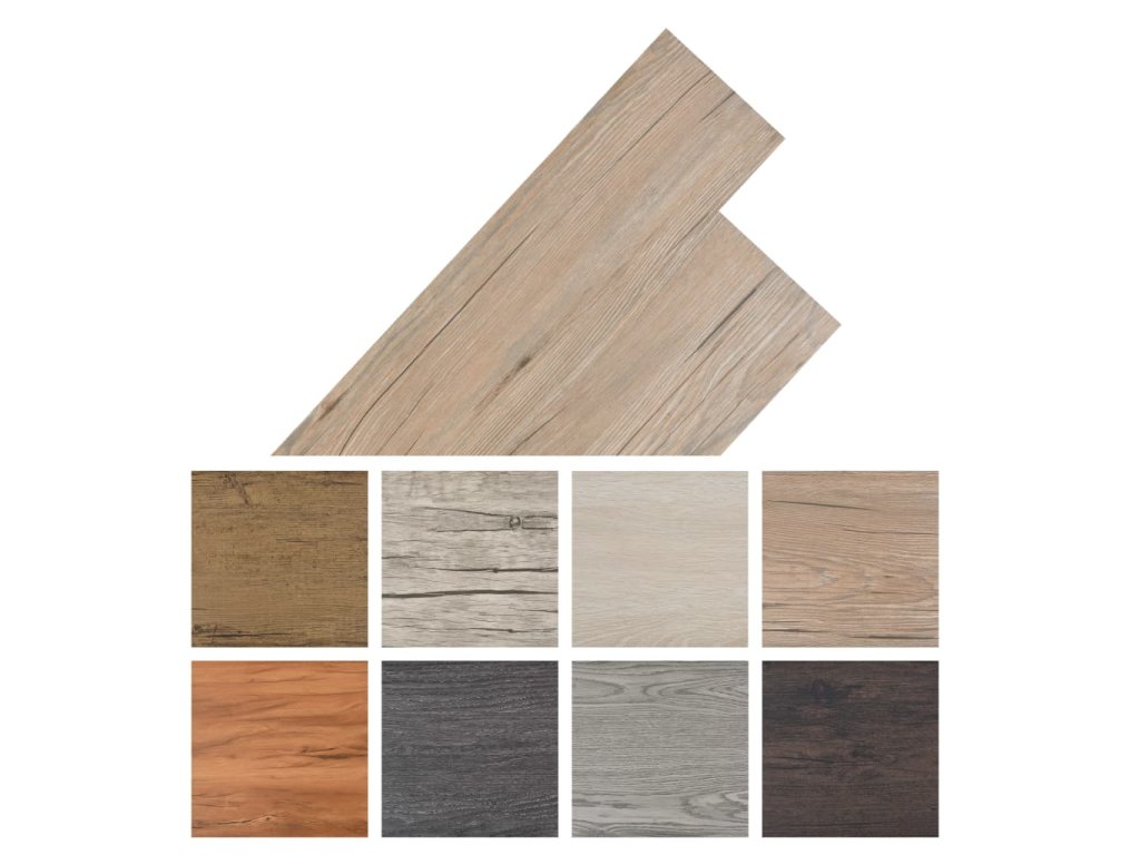Tieto podlahové dosky z PVC vyzerajú ako parkety z pravého dreva. Imitujú vzor a textúru prírodného dreva, no zároveň ponúkajú dlhšiu životnosť a nevyžadujú si takú náročnú údržbu, ako parkety z pravého dreva. Tieto dosky sú odolné voči plesniam a nespôsobujú alergie. Okrem toho sú antistatické, nehorľavé, vodoodolné, protišmykové atď. Samolepiaca podlaha je najvhodnejšia na hladké, suché, čisté a rovné povrchy, aby sa zabránilo lámaniu, vzniku vzduchových bublín, deformácii alebo odlupovaniu. Neodporúča sa na mokrý alebo nerovný podklad, horúce povrchy alebo ako podklad pre inú podlahu.