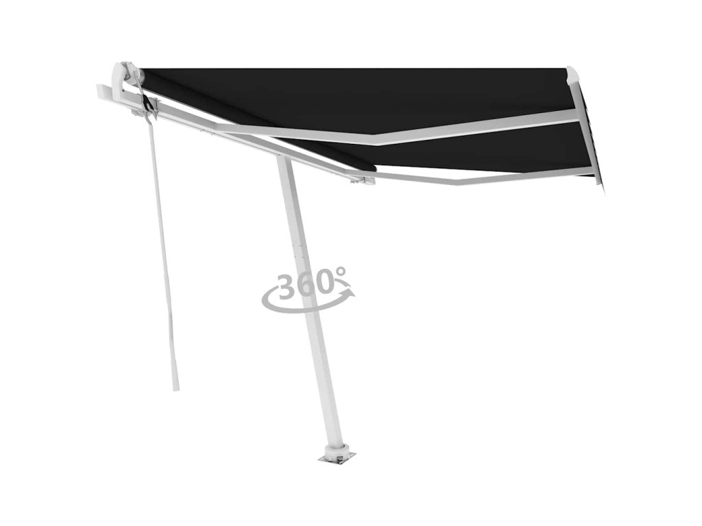 Táto vonkajšia markíza je vyrobená z nehrdzavejúceho práškovaného hliníkového rámu, vďaka čomu je ľahká, ale pevná. Tkanina terasovej markízy je vyrobená z polyesteru s vysokou hustotou s PU povrchovou úpravou, je odolná voči UV žiareniu a vode. Ďalej je možné podľa vašich preferencií nastaviť uhol a výšku. Automatickú výsuvnú markízu môžete ľahko otvoriť a zasunúť pomocou pribaleného diaľkového ovládača. Markízu dokážete jednoducho ovládať aj dlhou kľukou. Robustná základňa sa dá otáčať o 360 stupňov, čím maximálne vyhovie potrebám pri jej nastavovaní.