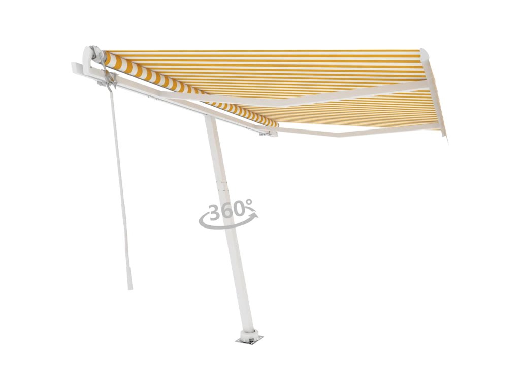 Táto vonkajšia markíza je vyrobená z nehrdzavejúceho práškovaného hliníkového rámu, vďaka čomu je ľahká, ale pevná. Tkanina terasovej markízy je vyrobená z polyesteru s vysokou hustotou s PU povrchovou úpravou, je odolná voči UV žiareniu a vode. Ďalej je možné podľa vašich preferencií nastaviť uhol a výšku. Automatickú výsuvnú markízu môžete ľahko otvoriť a zasunúť pomocou pribaleného diaľkového ovládača. Markízu dokážete jednoducho ovládať aj dlhou kľukou. Robustná základňa sa dá otáčať o 360 stupňov, čím maximálne vyhovie potrebám pri jej nastavovaní.