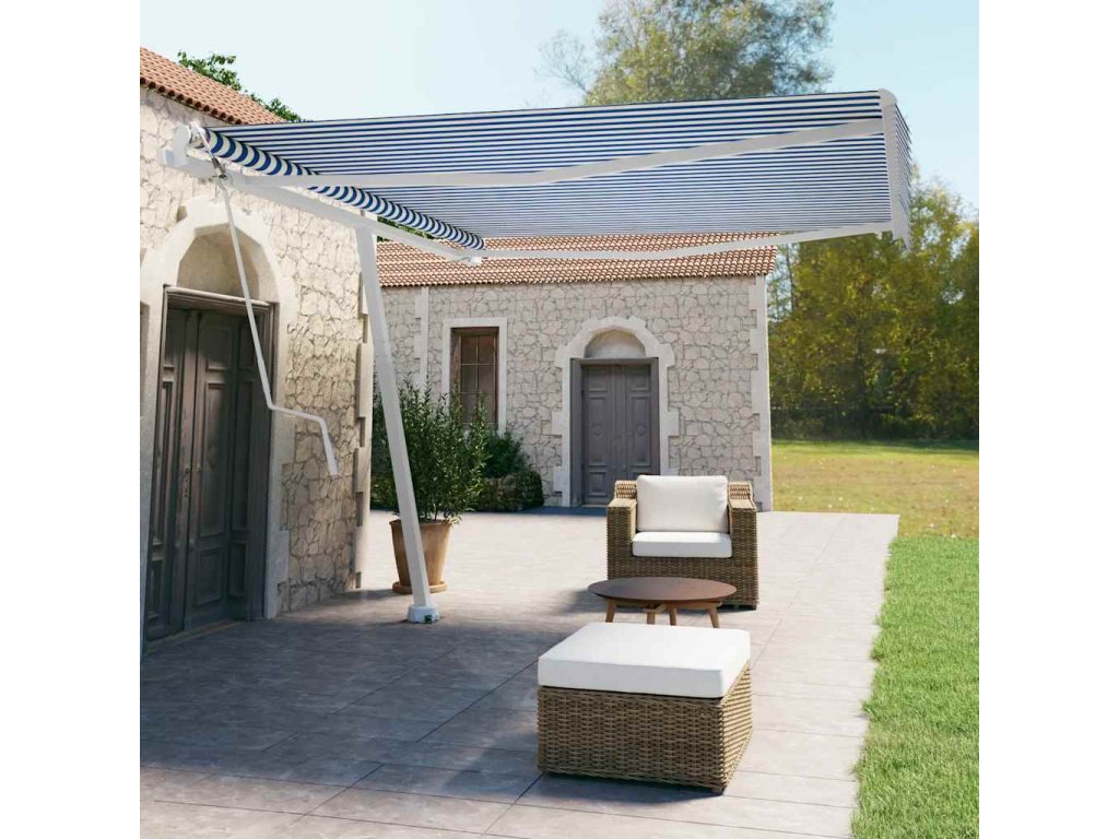 Táto vonkajšia markíza je vyrobená z nehrdzavejúceho práškovaného hliníkového rámu, vďaka čomu je ľahká, ale pevná. Tkanina terasovej markízy je vyrobená z polyesteru s vysokou hustotou s PU povrchovou úpravou, je odolná voči UV žiareniu a vode. Ďalej je možné podľa vašich preferencií nastaviť uhol a výšku. Automatickú výsuvnú markízu môžete ľahko otvoriť a zasunúť pomocou pribaleného diaľkového ovládača. Markízu dokážete jednoducho ovládať aj dlhou kľukou. Robustná základňa sa dá otáčať o 360 stupňov, čím maximálne vyhovie potrebám pri jej nastavovaní.