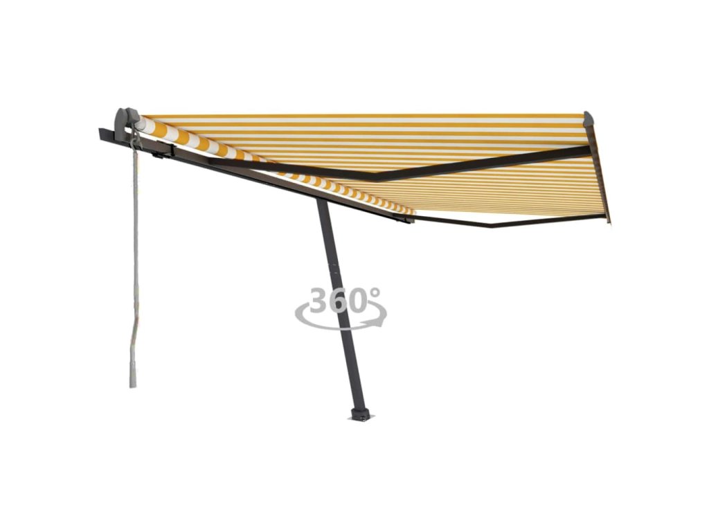 Táto vonkajšia markíza je vyrobená z nehrdzavejúceho práškovaného hliníkového rámu, vďaka čomu je ľahká, ale pevná. Tkanina terasovej markízy je vyrobená z polyesteru s vysokou hustotou s PU povrchovou úpravou, je odolná voči UV žiareniu a vode. Ďalej je možné podľa vašich preferencií nastaviť uhol a výšku. Automatickú výsuvnú markízu môžete ľahko otvoriť a zasunúť pomocou pribaleného diaľkového ovládača. Markízu dokážete jednoducho ovládať aj dlhou kľukou. Robustná základňa sa dá otáčať o 360 stupňov, čím maximálne vyhovie potrebám pri jej nastavovaní.