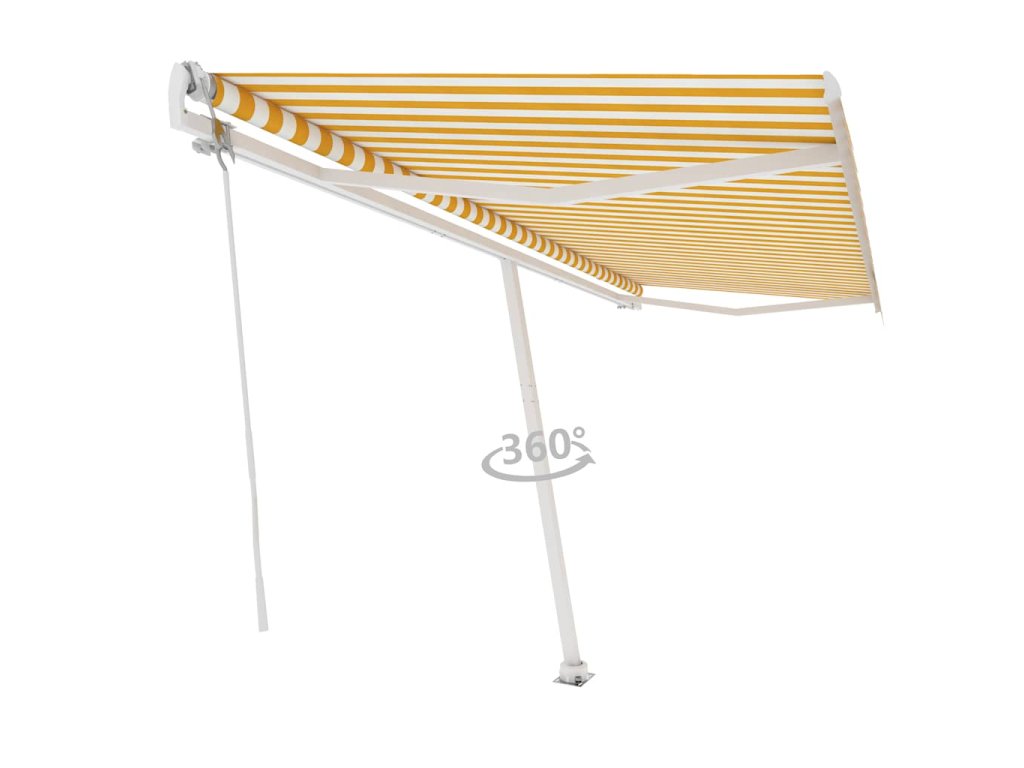 Táto vonkajšia markíza je vyrobená z nehrdzavejúceho práškovaného hliníkového rámu, vďaka čomu je ľahká, ale pevná. Tkanina terasovej markízy je vyrobená z polyesteru s vysokou hustotou s PU povrchovou úpravou, je odolná voči UV žiareniu a vode. Ďalej je možné podľa vašich preferencií nastaviť uhol a výšku. Automatickú výsuvnú markízu môžete ľahko otvoriť a zasunúť pomocou pribaleného diaľkového ovládača. Markízu dokážete jednoducho ovládať aj dlhou kľukou. Robustná základňa sa dá otáčať o 360 stupňov, čím maximálne vyhovie potrebám pri jej nastavovaní.