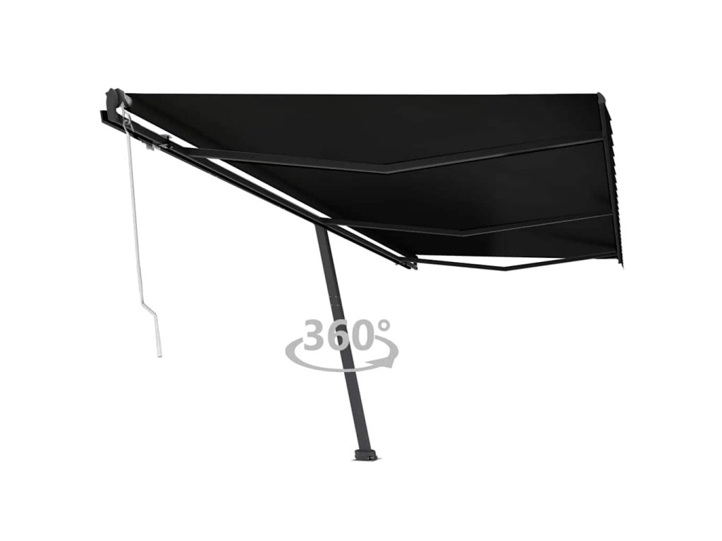 Táto vonkajšia markíza je vyrobená z nehrdzavejúceho práškovaného hliníkového rámu, vďaka čomu je ľahká, ale pevná. Tkanina terasovej markízy je vyrobená z polyesteru s vysokou hustotou s PU povrchovou úpravou, je odolná voči UV žiareniu a vode. Ďalej je možné podľa vašich preferencií nastaviť uhol a výšku. Automatickú výsuvnú markízu môžete ľahko otvoriť a zasunúť pomocou pribaleného diaľkového ovládača. Markízu dokážete jednoducho ovládať aj dlhou kľukou. Robustná základňa sa dá otáčať o 360 stupňov, čím maximálne vyhovie potrebám pri jej nastavovaní.