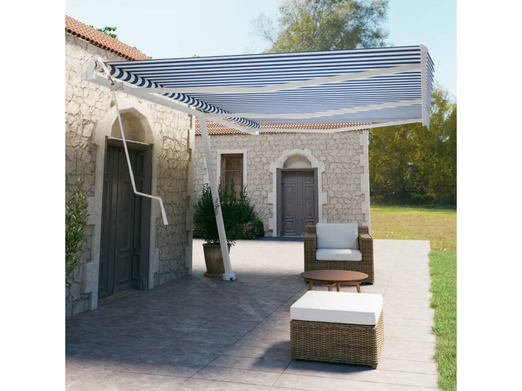 Táto vonkajšia markíza je vyrobená z nehrdzavejúceho práškovaného hliníkového rámu, vďaka čomu je ľahká, ale pevná. Tkanina terasovej markízy je vyrobená z polyesteru s vysokou hustotou s PU povrchovou úpravou, je odolná voči UV žiareniu a vode. Ďalej je možné podľa vašich preferencií nastaviť uhol a výšku. Automatickú výsuvnú markízu môžete ľahko otvoriť a zasunúť pomocou pribaleného diaľkového ovládača. Markízu dokážete jednoducho ovládať aj dlhou kľukou. Robustná základňa sa dá otáčať o 360 stupňov, čím maximálne vyhovie potrebám pri jej nastavovaní.