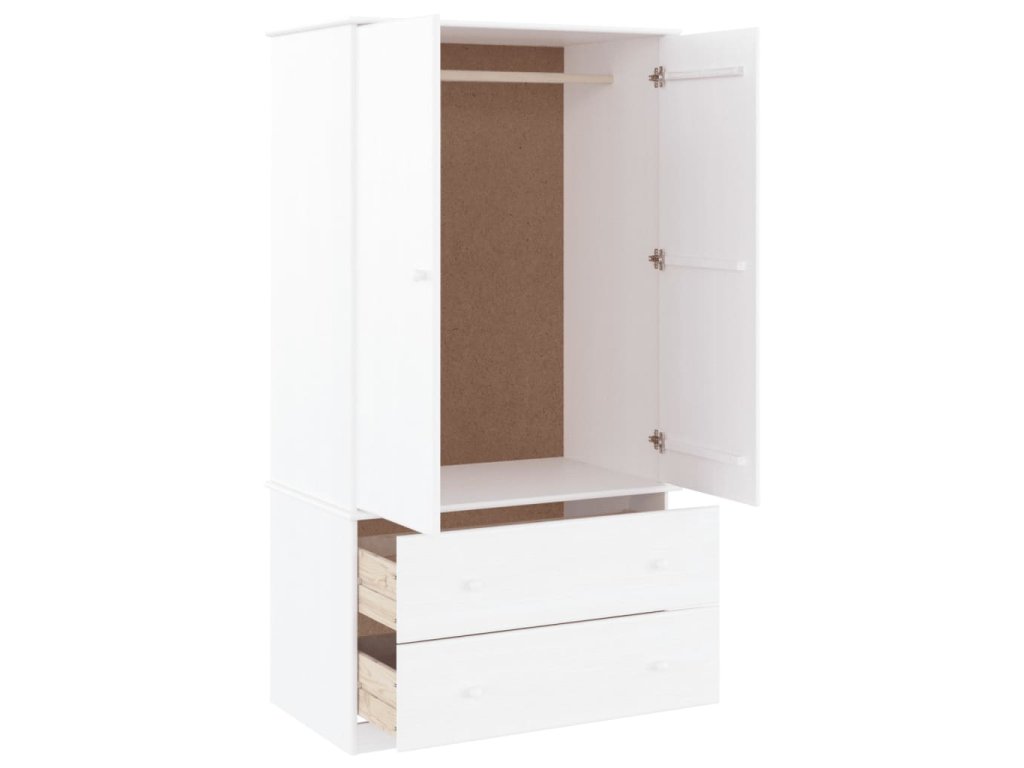 - Dostatok úložného priestoru: Skriňa je vo vnútri vybavená koľajnicou na zavesenie oblečenia a 2 zásuvkami pre ďalší úložný priestor.