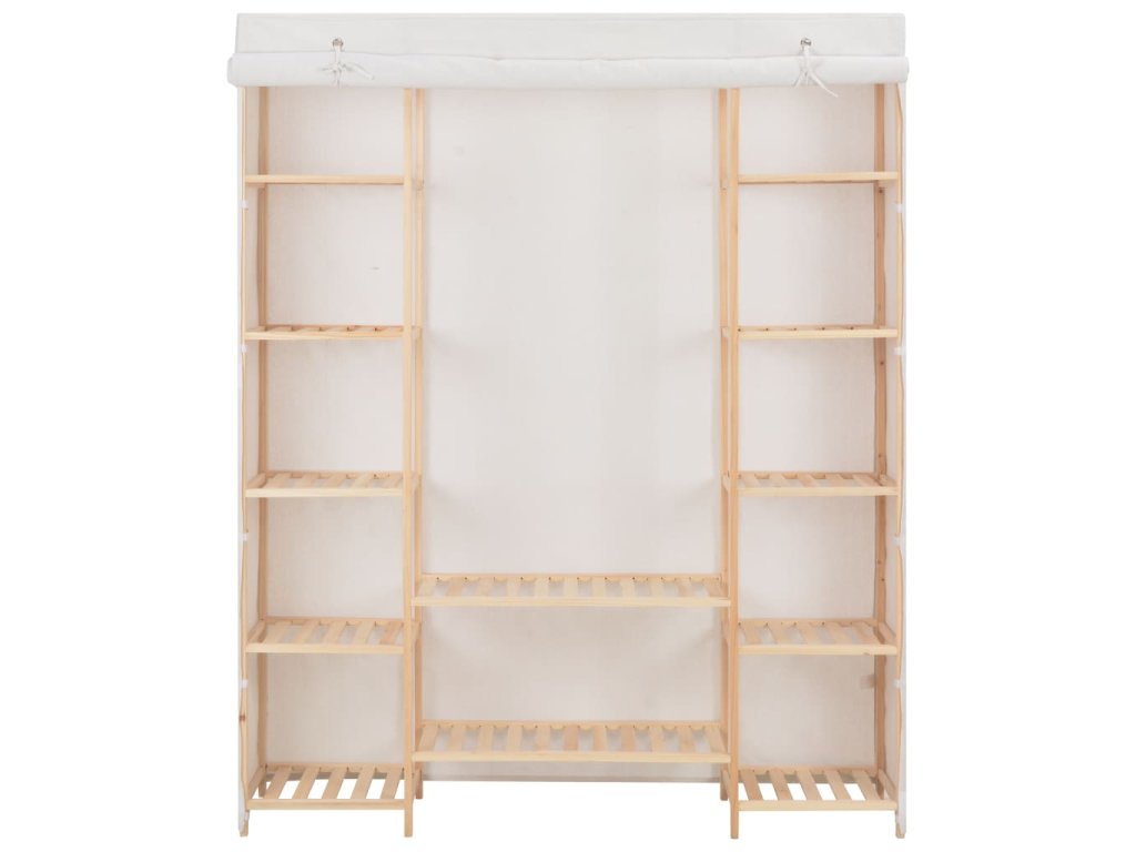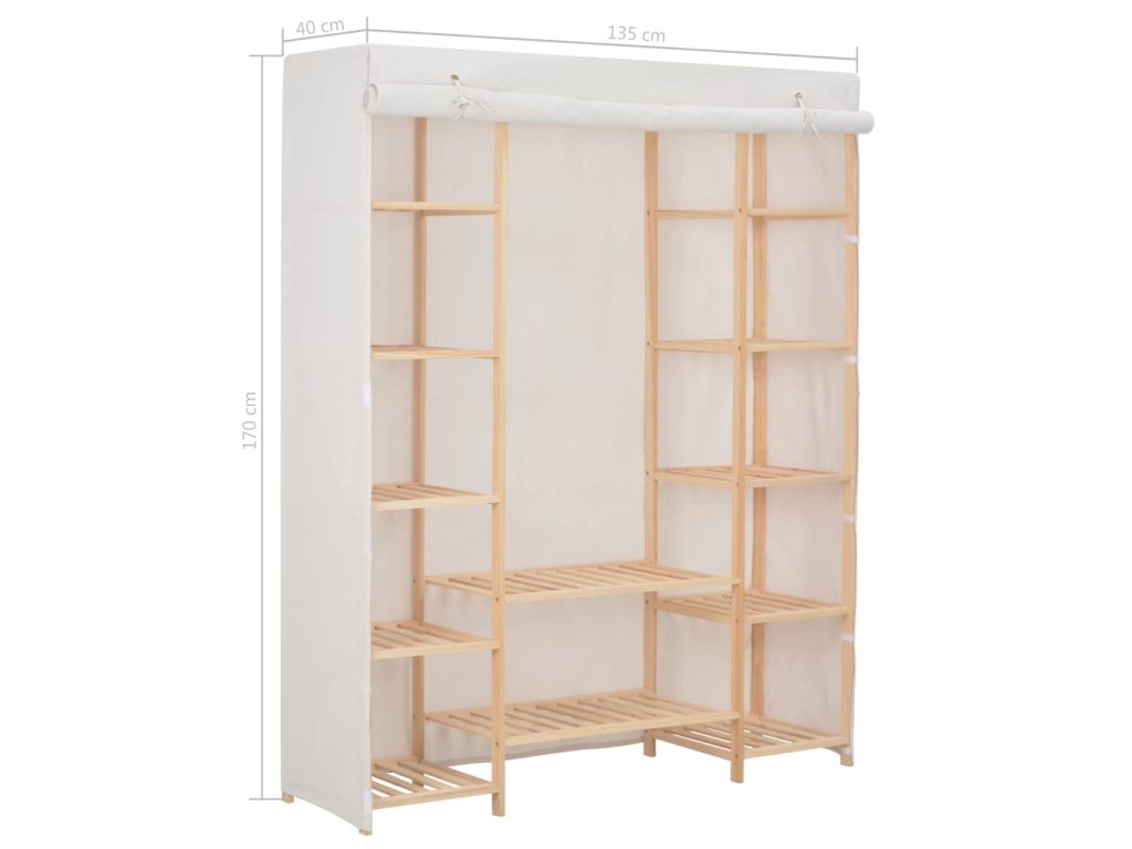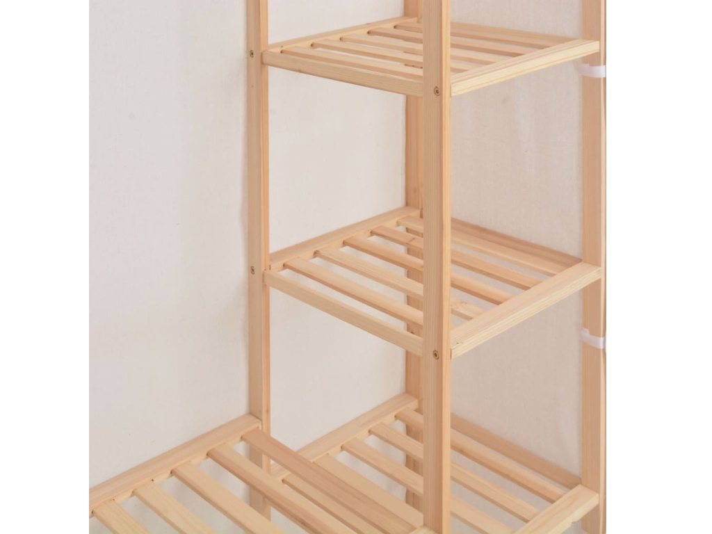 Šatník má odolnú drevenú štruktúru s viacerými otvorenými priehradkami. Vďaka textilnému poťahu bude vaše oblečenie skryté a zároveň chránené pred prachom. Náš textilný šatník sa jednoducho montuje.