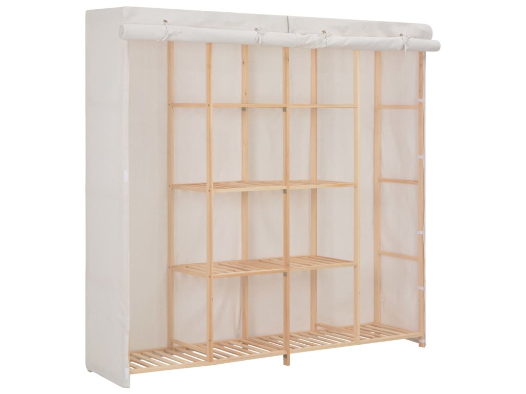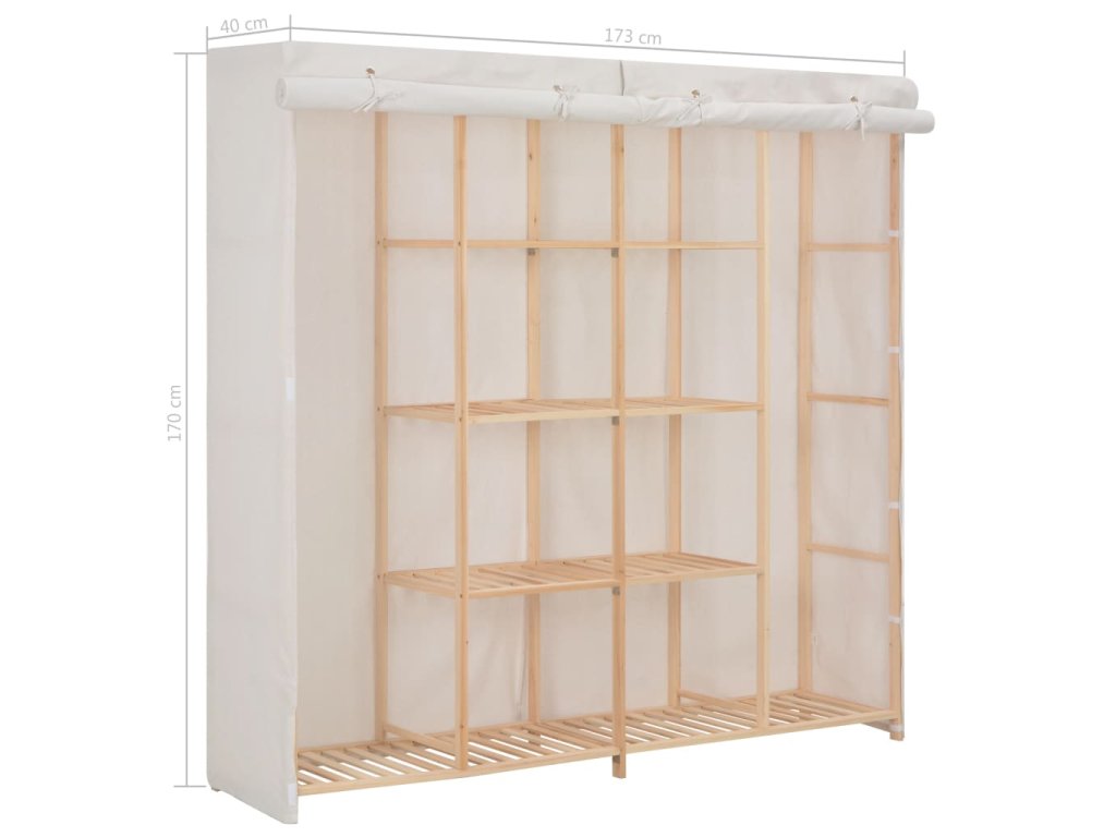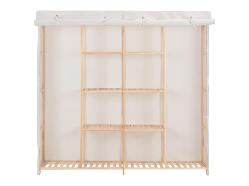 Šatník má odolnú drevenú štruktúru s viacerými otvorenými priehradkami. Vďaka textilnému poťahu bude vaše oblečenie skryté a zároveň chránené pred prachom. Náš textilný šatník sa jednoducho montuje.