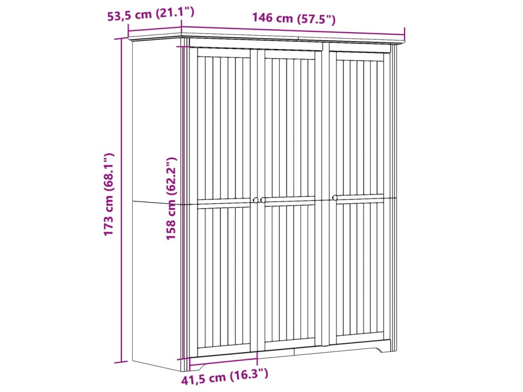 - Rozmery: 146 x 53,5 x 173 cm (D x Š x V)