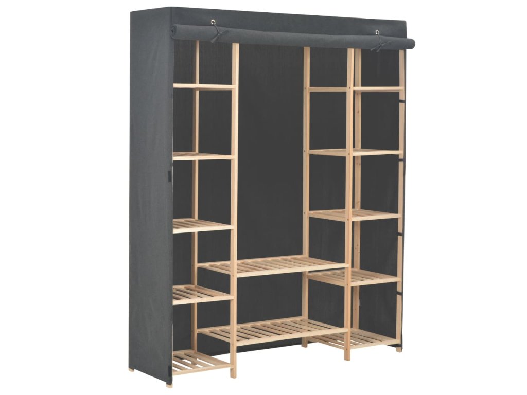 Šatník má odolnú drevenú štruktúru s viacerými otvorenými priehradkami. Vďaka textilnému poťahu bude vaše oblečenie skryté a zároveň chránené pred prachom. Náš textilný šatník sa jednoducho montuje.