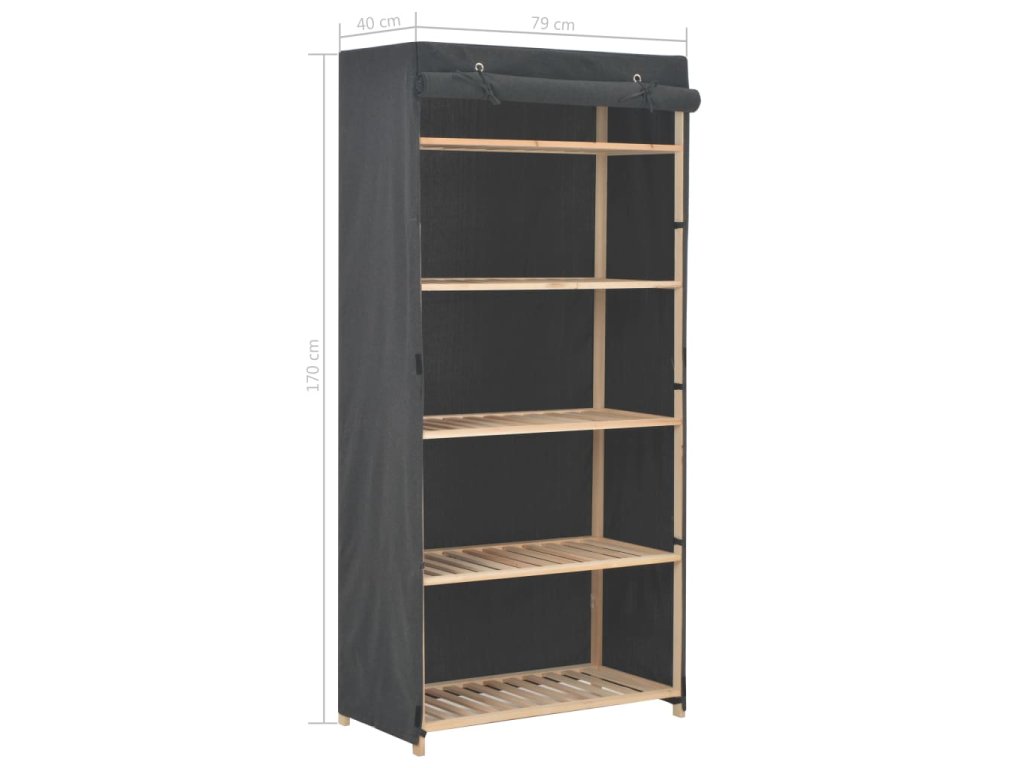 Šatník má 4 pevné poličky na uloženie a zorganizovanie topánok, mikín, džínsov, klobúkov, kabeliek a podobne. Ďaľšie oddelenie je vybavené závesnou tyčou, ktorú môžete použiť na zavesenie napríklad kabátov a šiat. Látka, ktorá je okolo celej skrine a ľahko otvárateľné záclonové dvierka zabezpečia, že vaše veci sa nezaprášia.