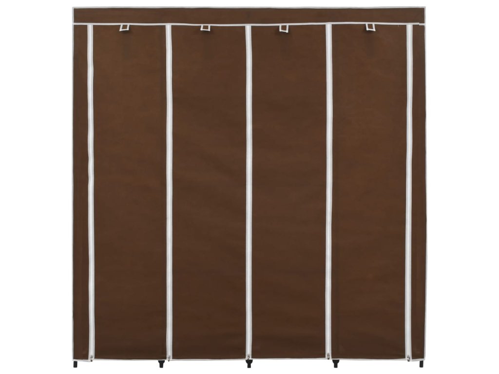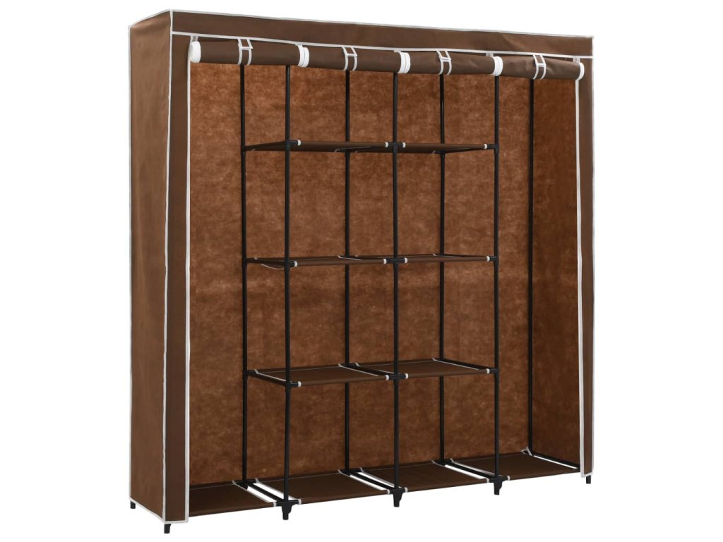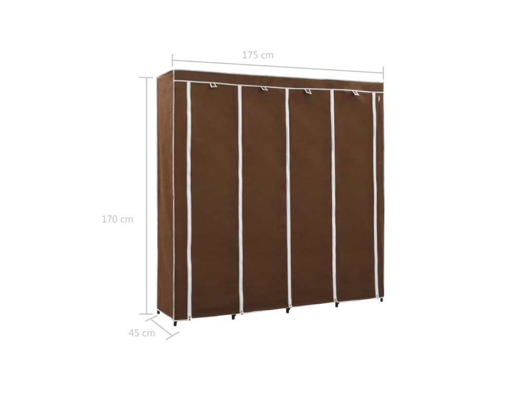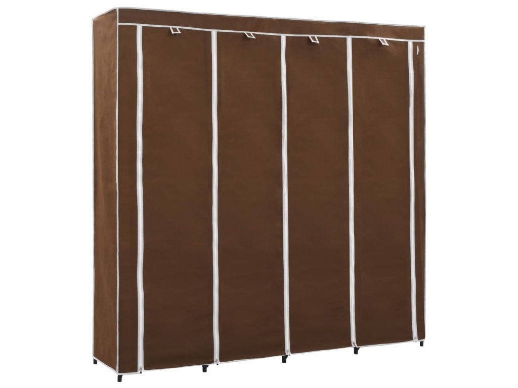 Vyznačuje sa pevným železným rámom, vďaka ktorému sa stojan na šaty ľahko premiestňuje a je mimoriadne odolný. Okrem toho má štyri priehradky, ktoré poskytujú dostatok priestoru na uloženie vašich tašiek, obuvi alebo malých predmetov, ktoré chcete mať na dosah. Textilný obal so zipsom ochráni vaše oblečenie pred špinou a prachom.