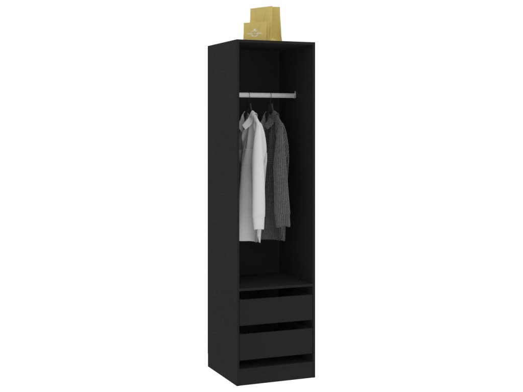 Šatník je vyrobený z kompozitného dreva, vďaka čomu je robustný, trvácny a má dlhú životnosť. Obsahuje 2 zásuvky a 1 veľký otvorený priečinok s tyčou na vešiaky, a tak vám poskytne množstvo priestoru na dlhé odevy, ktoré chcete zavesiť na vešiak, aj na poskladané oblečenie a doplnky, ako napríklad svetre, rifle, klobúky, kabelky a podobne.