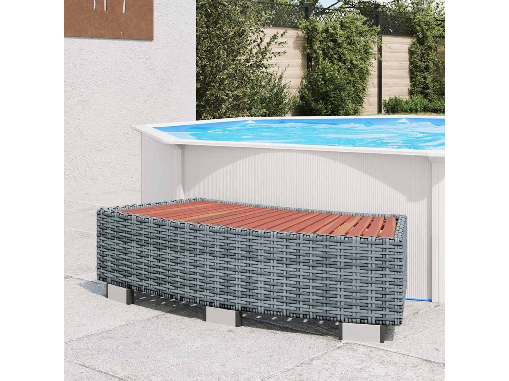 Schodík k vírivke je vyrobený z PE ratanu a tvrdého tropického eukalyptového dreva s prírodným olejovým náterom, takže je odolný voči poveternostným vlyvom a UV žiareniu, trvácny a ľahko sa používa. Schodík k vírivke má v prednej a zadnej časti hliníkové podstavce, ktoré mu dodávajú potrebnú stabilitu. Vďaka oceľovému rámu s práškovou povrchovou úpravou je tento schodík dostatočne pevný a trvácny a okrem toho vyzerá naozaj štýlovo. Zaručene skrášli vzhľad vašej vírivky.