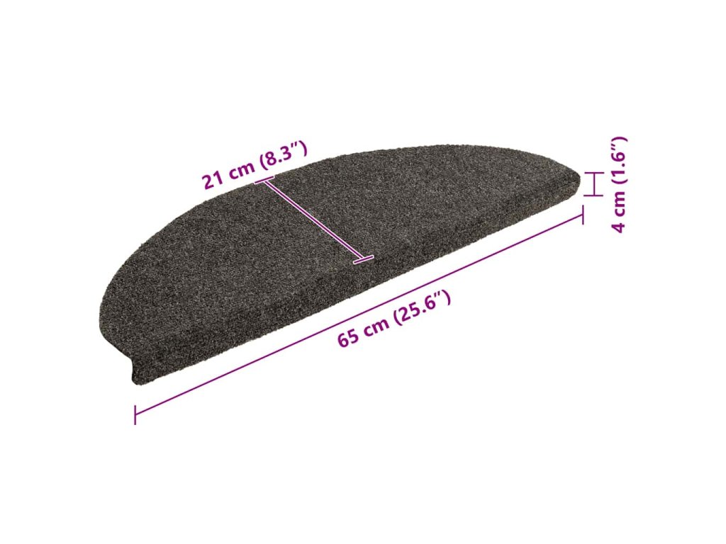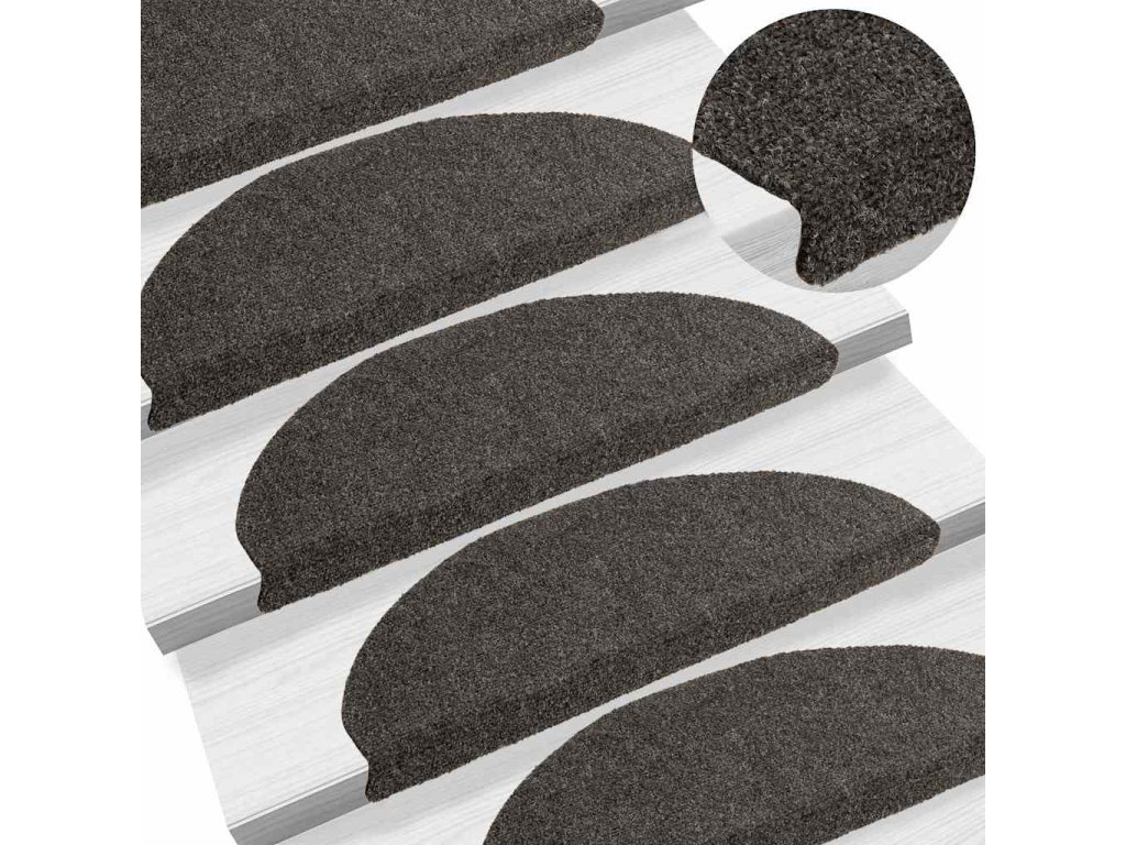 vidaXL Schodové rohože, samolepiace, 15 ks, 65x21x4 cm, antracitové, polkruhové, veľké