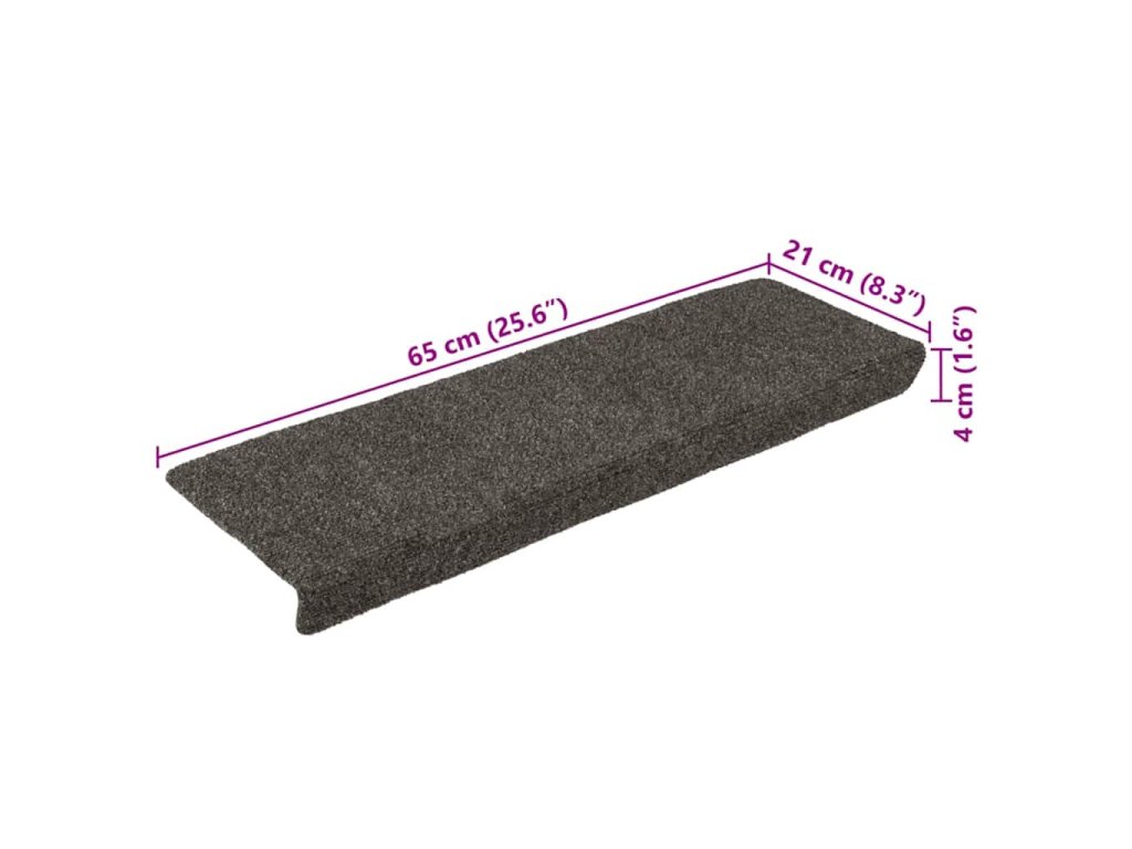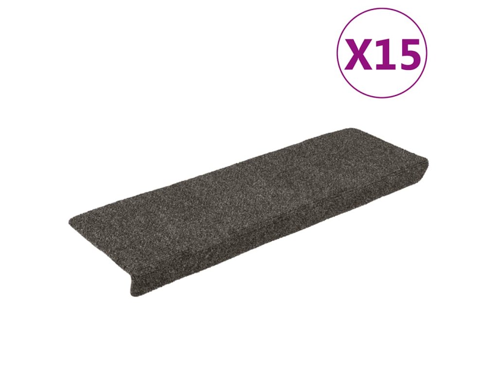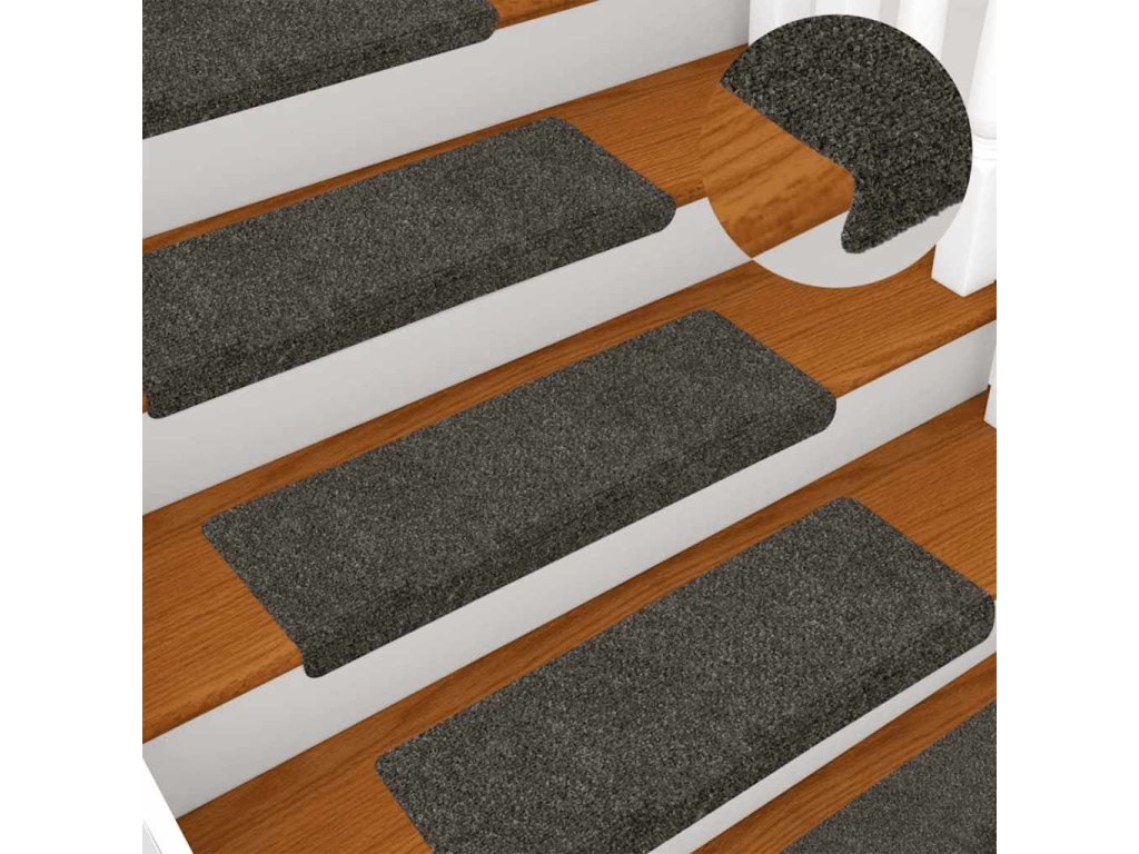 vidaXL Schodové rohože, samolepiace, 15 ks, 65x21x4 cm, antracitové, s obdĺžnikovým okrajom