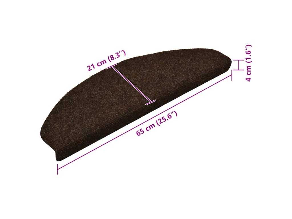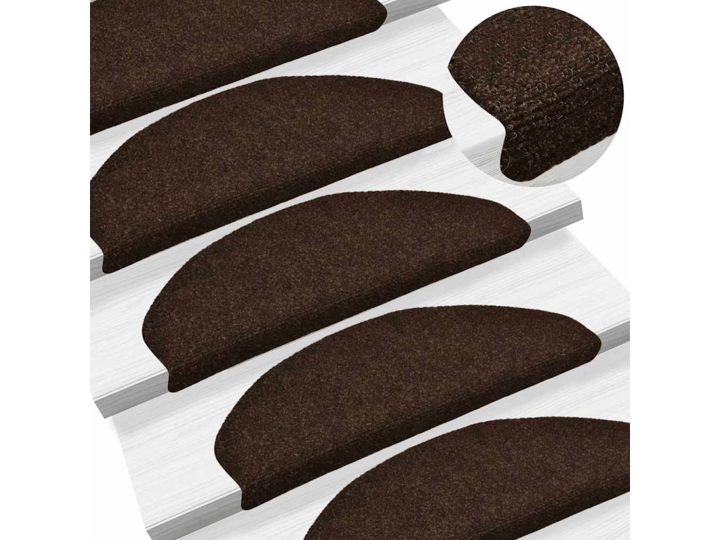 vidaXL Schodové rohože, samolepiace, 15 ks, 65x21x4 cm, hnedé, polkruhové, veľké