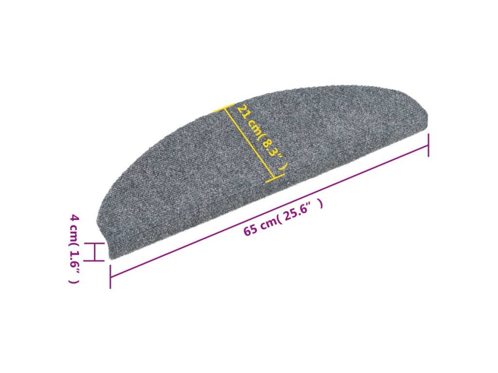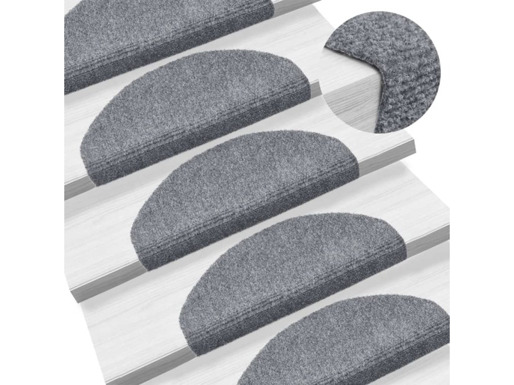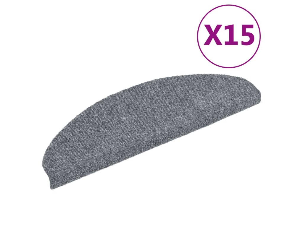 vidaXL Schodové rohože, samolepiace, 15 ks, 65x21x4 cm, svetlosivé, polkruhové, veľké