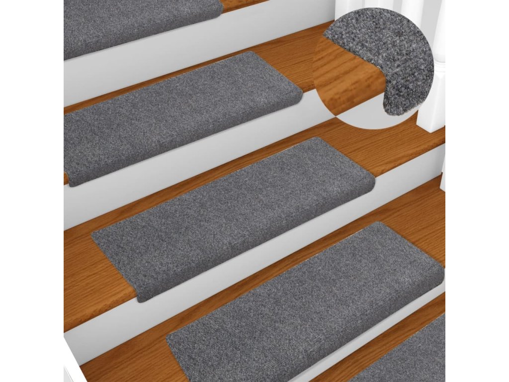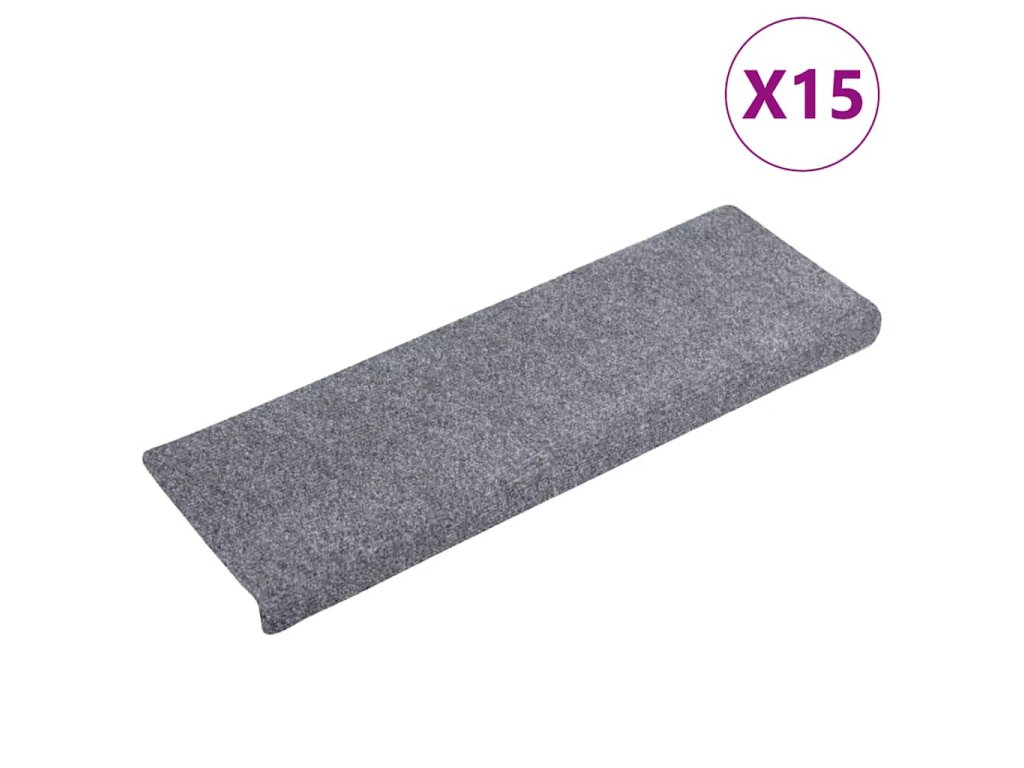 vidaXL Schodové rohože, samolepiace, 15 ks, 65x21x4 cm, svetlosivé, s obdĺžnikovým okrajom