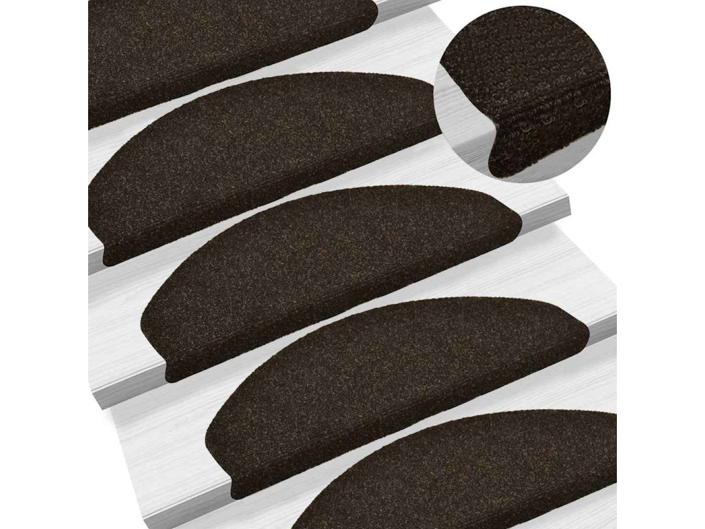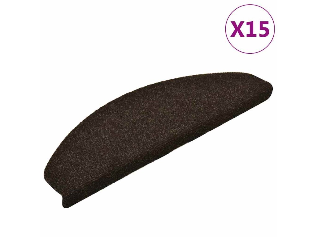 vidaXL Schodové rohože, samolepiace, 15 ks, 65x21x4 cm, tmavohnedé, polkruhové, veľké
