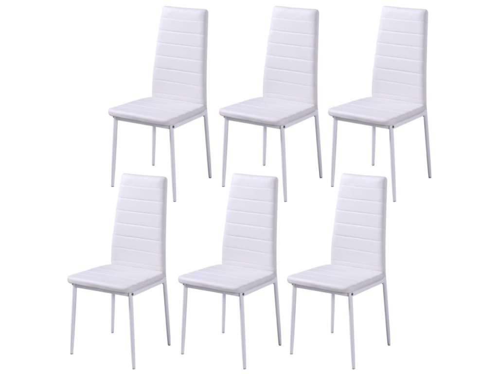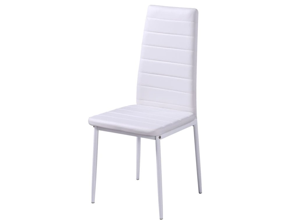 Doska stola je vyrobená z veľmi odolného tvrdeného skla, ktoré sa ľahko čistí. Každá stolička má vysokokvalitný poťah z umelej kože. Poddajné vyčalúnené sedadlá sú veľmi pohodlné.